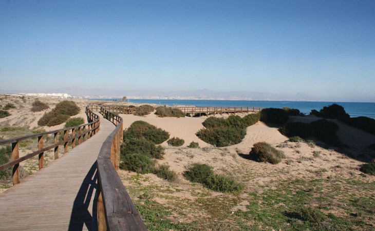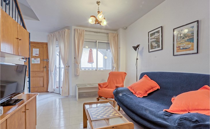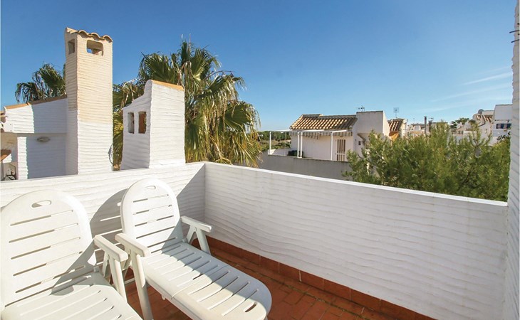 This fantastic terraced house is located in the urban area of Costa Hispania, which is one of the most beautiful areas of Gran Alacant. The house is situated in an enclosed complex with lush vegetation and is spread over two floors. It is just a few metres away from the nature reserve "Clot de Galvany" and the golden sand dunes of Carabassi Beach. Cot and high chair are available on request. Santa Pola is a cosy, small fishing village with a beautiful harbour.