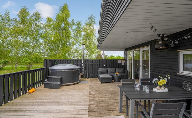 This beautiful wooden holiday home offers a heated wooden bathing tub with space for 4 people, where you can admire the starry sky while lying in the warm water. The house is located in the cottage area Ristinge with one of the best sandy beaches in Langeland, which invites you to swim in the sea in the summer. The area is very good for long walks all year round. Langeland's golf course and a put and take lake are only 7.5 km from the house. Wild horses can be seen at Klise Nor, which is only 11 km away. The house is bright and friendly furnished and has a lot of comfort. It is very suitable for families with children. There is no carpeting in the house.