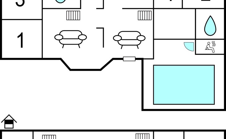 In the middle of the hilly landscape of Mols lies this large and attractive vacation home with indoor pool as well as whirlpool for two persons. From the house you have a magnificent view of the sea and the beautiful surroundings. On the large terrace you can enjoy the sun all day while the children romp on the large natural plot. If you prefer to stay indoors, you can invite the whole family to play a game of chess on the chessboard set up or work out on the fitness bench. On the Hems is a game room set up with TV, DVD, Cromecast and WiFi with 100 Mbit/s fiber optic cable. This spacious house is ideal for several families. In the naturally beautiful area of Mols Bjerge you will find many good hiking trails. Fifth bedroom on the Hems.