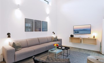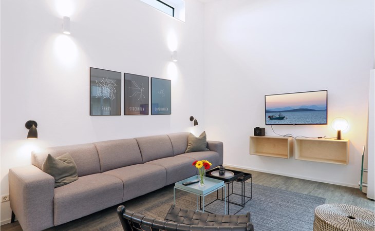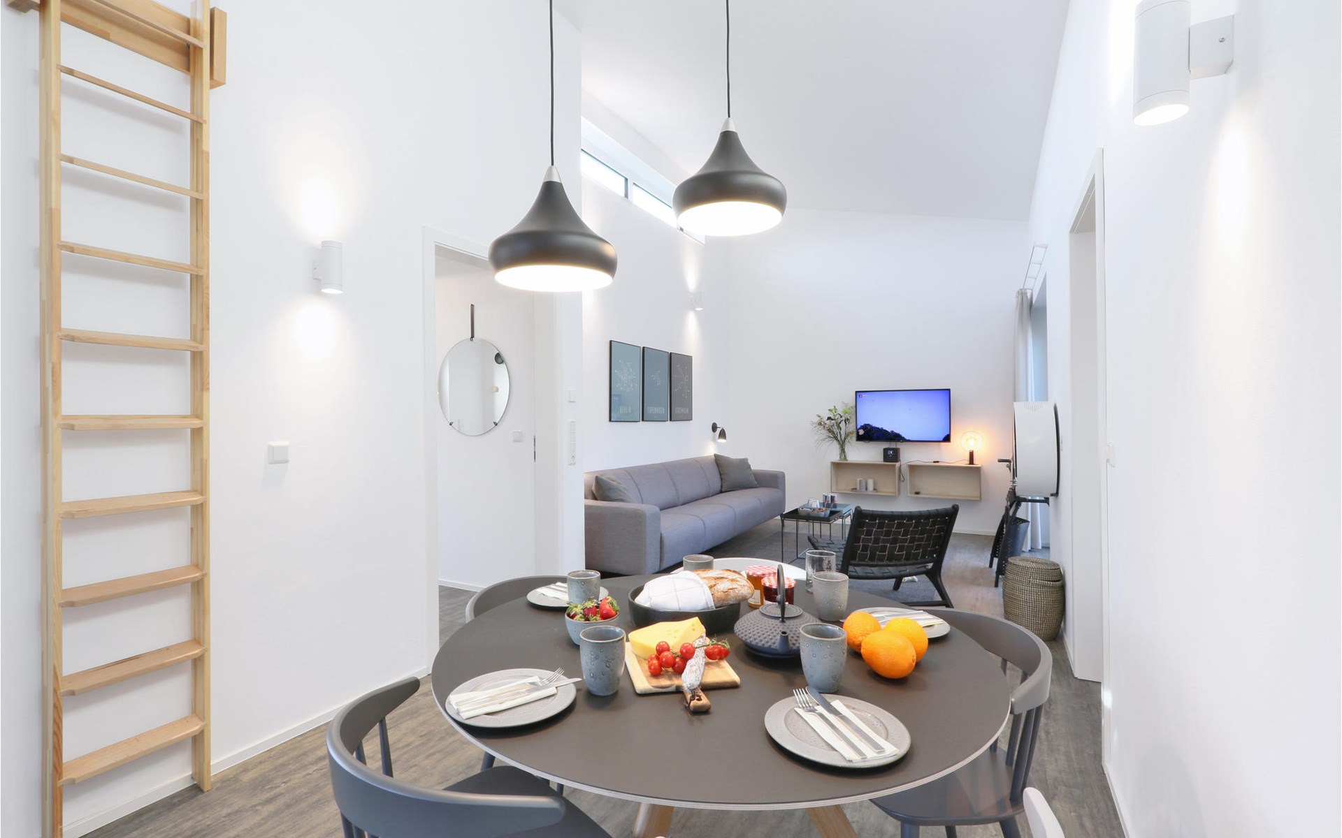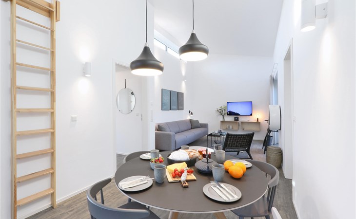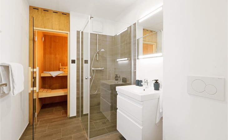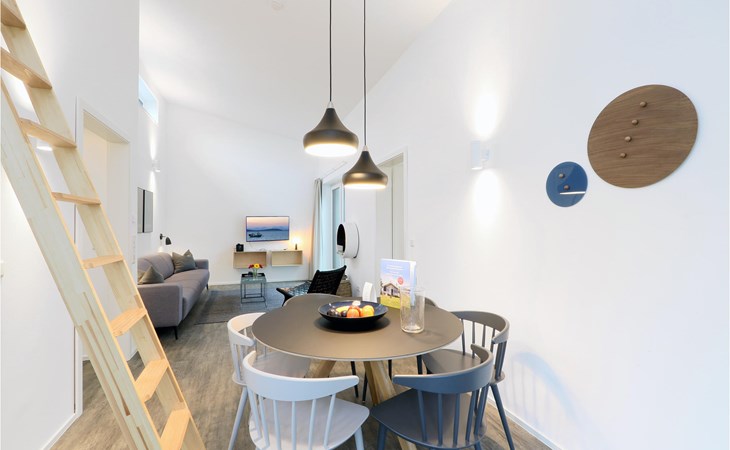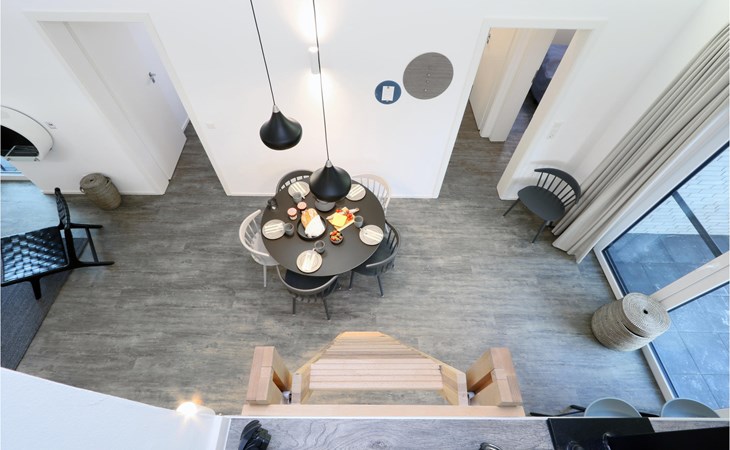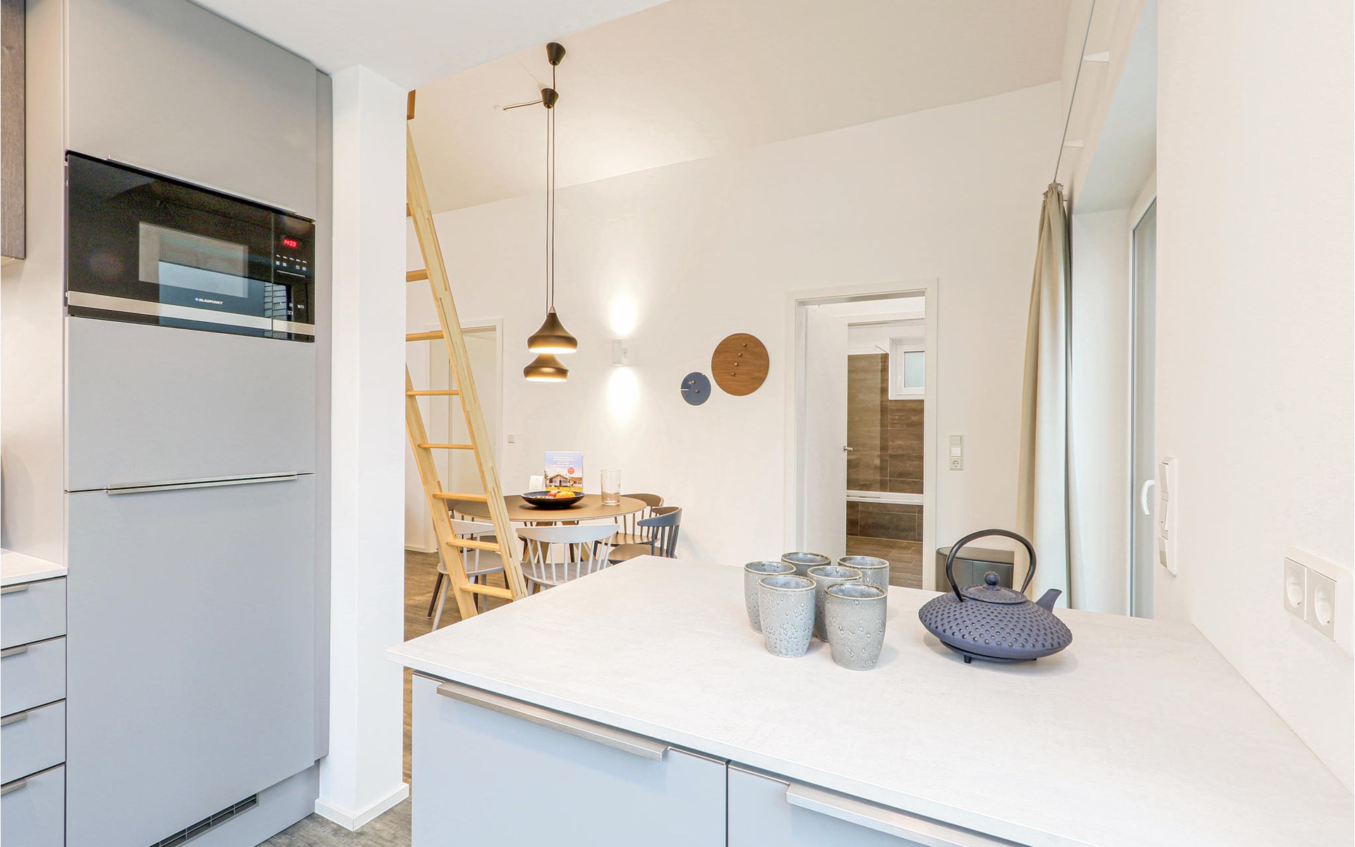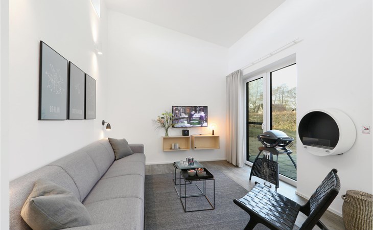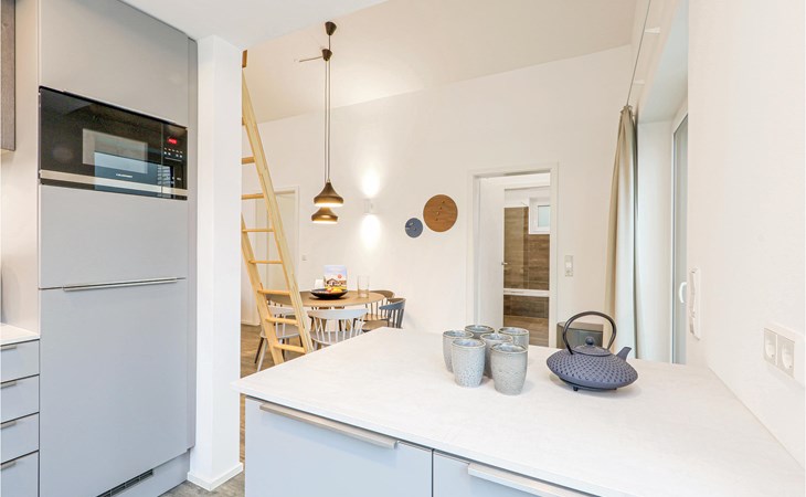 Welcome to your holiday home, which offers you as a family with children or as a small group of friends a cosy, homely ambience with Scandinavian design furnishings. Two terraces for sitting and eating in the sun, the bio-fireplace and your own sauna leave nothing to be desired. The open-plan kitchen invites you to cook and linger. There is an open-plan bedroom on the gallery.