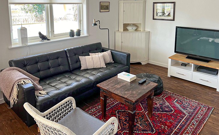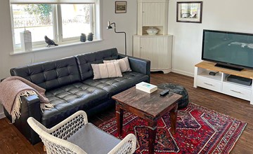 In your charming vacation home on the south coast of the Swedish region of Skåne, you can expect close proximity to the sea and a wonderful vacation experience. The interior of your vacation home combines traditional elements with modern furnishings and creates a warm atmosphere. The practically designed kitchen offers ideal conditions for cooking together. Enjoy your meals at the elegant dining table with a view out into the garden. Make yourself comfortable on the sofa and relax in the cozy warmth of the fireplace.
