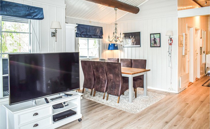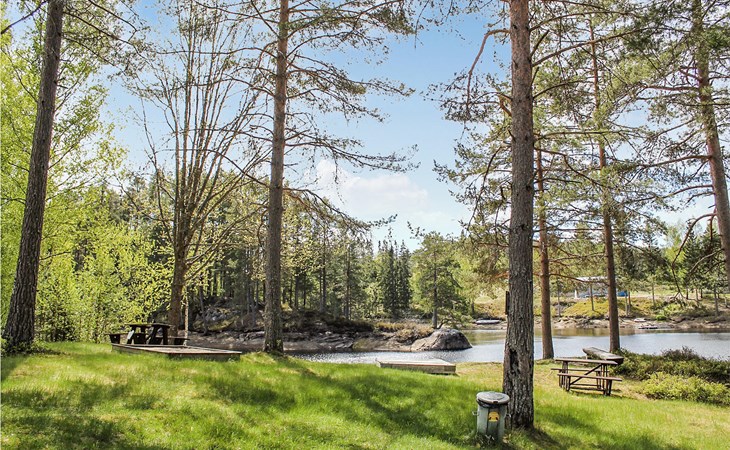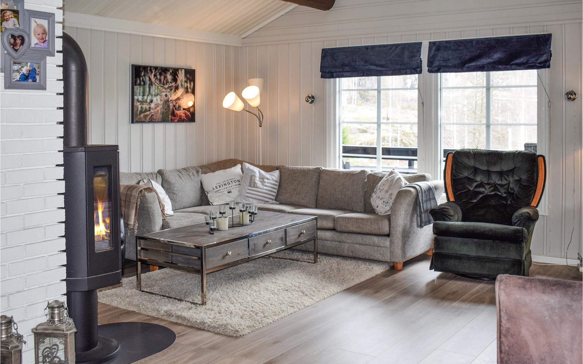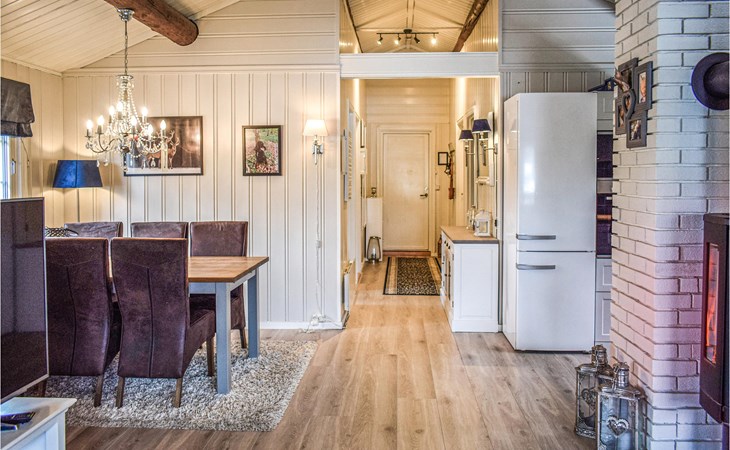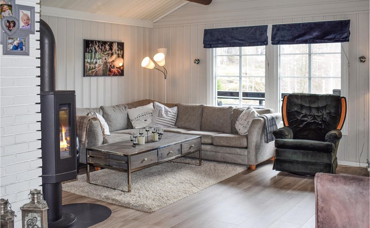 Vacation cottage in a beautiful cottage area on a remote peninsula in Tokevatnet in Drangedal municipality. An ideal location for exploring this unique nature with excellent opportunities for outdoor activities such as swimming, boating and fishing. Inside the house you will find a cozy living room with high ceiling, fireplace and beautiful decorative elements. Ever tried sitting in a hot tub on a terrace surrounded by nature and enjoy the sunset from here? In the cottage area there are two boat harbors, two common swimming beaches with a lawn, a common barbecue area with a barbecue pavilion and a common area for ball games and romping.