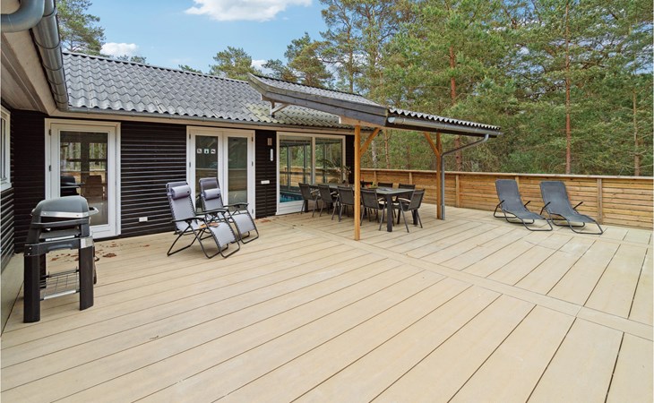 The beautiful sandy beach is only 400 metres away, so you are guaranteed to have fun both indoors and outdoors. If you enjoy playing golf, Dueodde golf course is just 1.3 kilometres away. The area offers great walking trails. Nearby excursion destinations include Dueodde lighthouse, Rokkestenen, Nexø, the charming towns of Snogebæk and Svaneke and many more. The children will hardly say no to a Krølle-Bølle ice cream, named after the island's national troll.