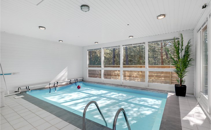 Inviting holiday home with indoor pool in a beautiful location, just 400 metres from the beach.