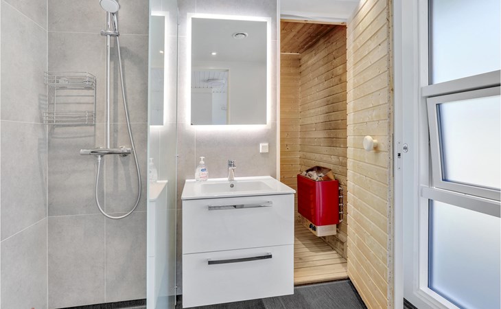 The natural centre of the house is the living room with dining area, sofa, wood-burning stove and a well-equipped kitchen area. Here you can spend your holiday time according to your taste. For example, you can watch TV, listen to the radio or music, play games and engage in interesting conversations. A great highlight of the holiday home is the indoor pool, where you can get active. Of the four bedrooms in the house, one is furnished with two single beds, each 180 cm long. One of the two bathrooms has a sauna, which is ideal for a visit after a dip in the pool or the nearby sea.