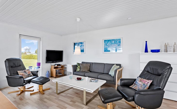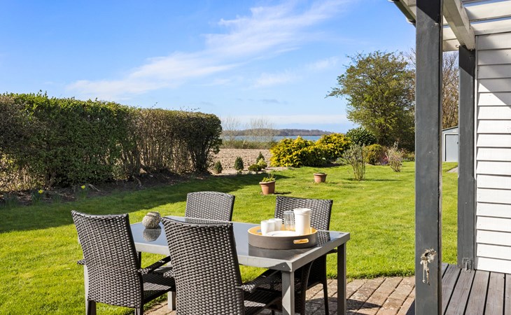 This cozy vacation home offers pure idyll. With a view of the adjacent fields and meadows and a beautiful view of the glittering blue sea, there is so much on offer here. Here you can start the day in peace and quiet with a cup of coffee and an extensive breakfast with the whole family. You can also prepare the rest of the day's meals in the open kitchen. The living area has a peaceful atmosphere that invites you to relax and socialize. The view of the terrace and the extensive grounds makes you want to spend time outdoors. Enjoy a tasty snack on the terrace or have a barbecue here in the evening. The large lawn offers plenty of space for long throws with a frisbee or for ball games.