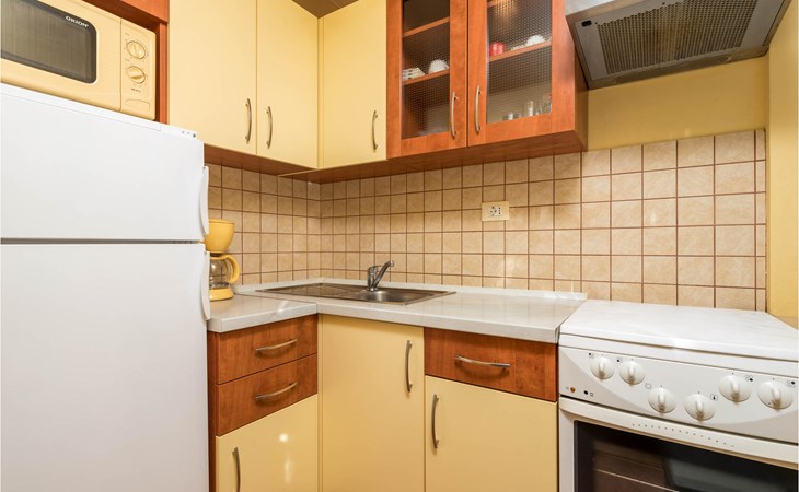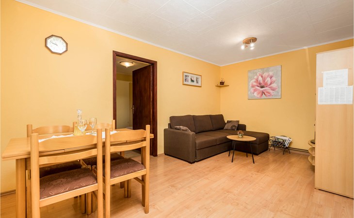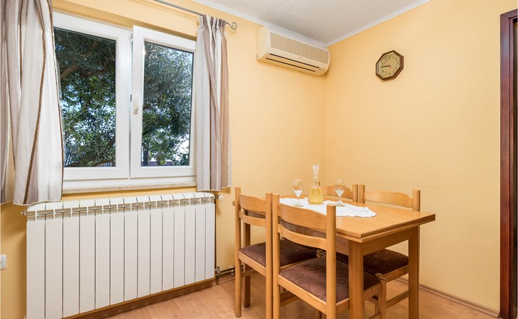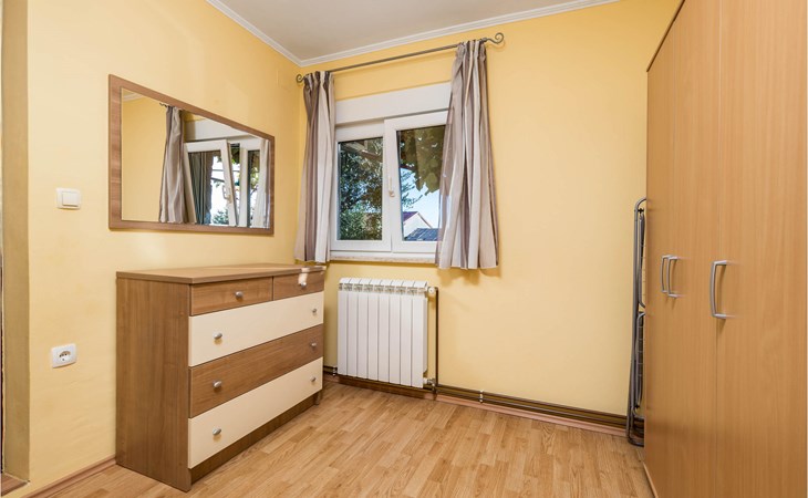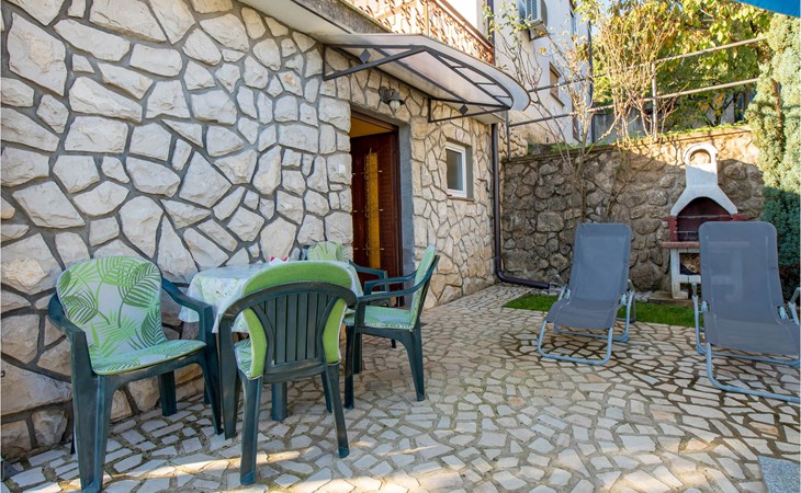Spend your holiday in Lovran, where this beautiful and functionally furnished holiday apartment is located on the ground floor of a family house. Enjoy your morning coffee or relax with a good book on the large terrace, surrounded by greenery and flowers. There are many pebble beaches close to the house where you can refresh yourself in the sea on hot summer days. The location is ideal for exploring the surrounding area and smaller sights in the towns of Iii and Opatija, which offer entertainment, cultural and sports activities during the summer. For day trips, we recommend visiting the Uka Nature Park or the nearby islands of Krk and Cres.
