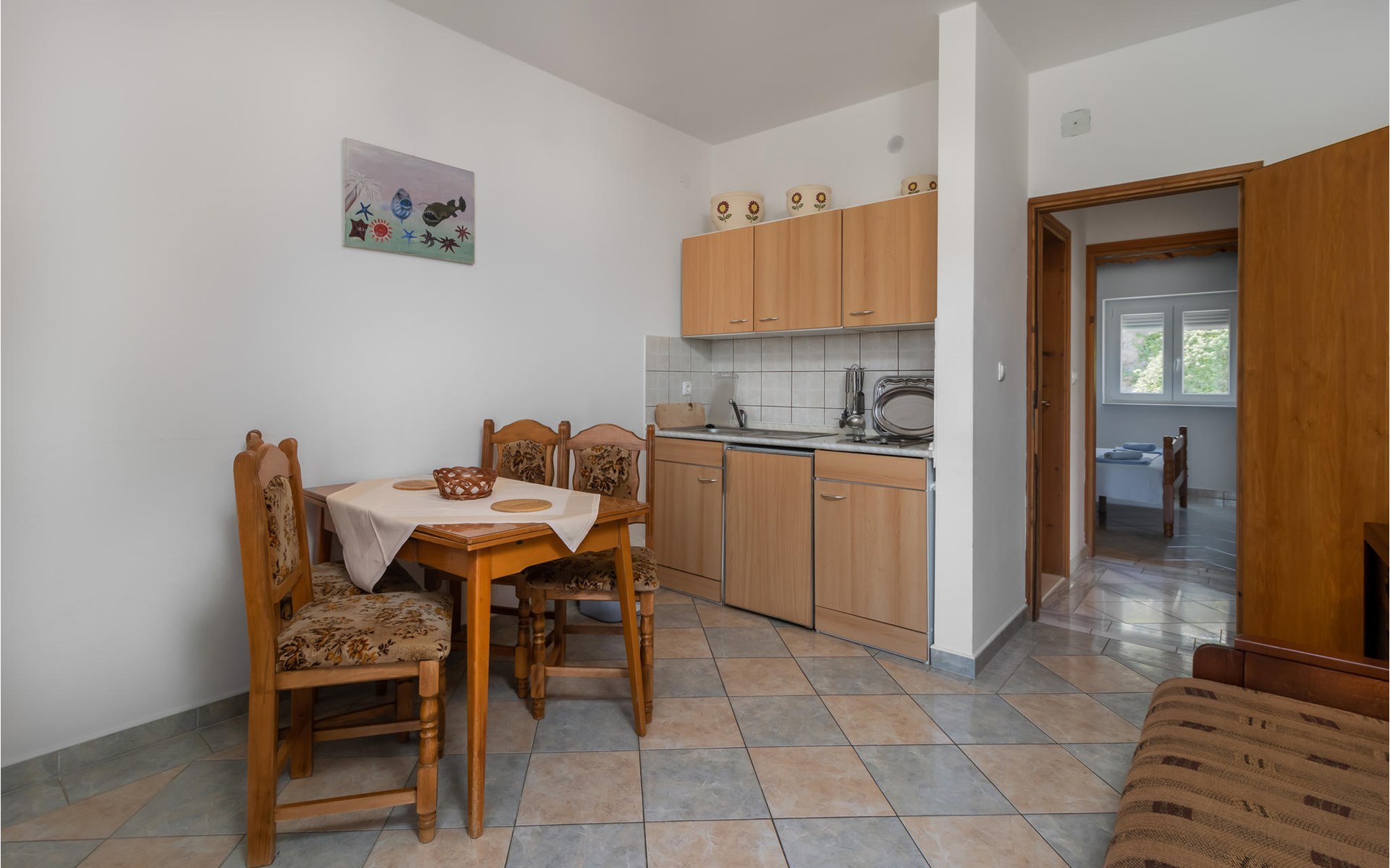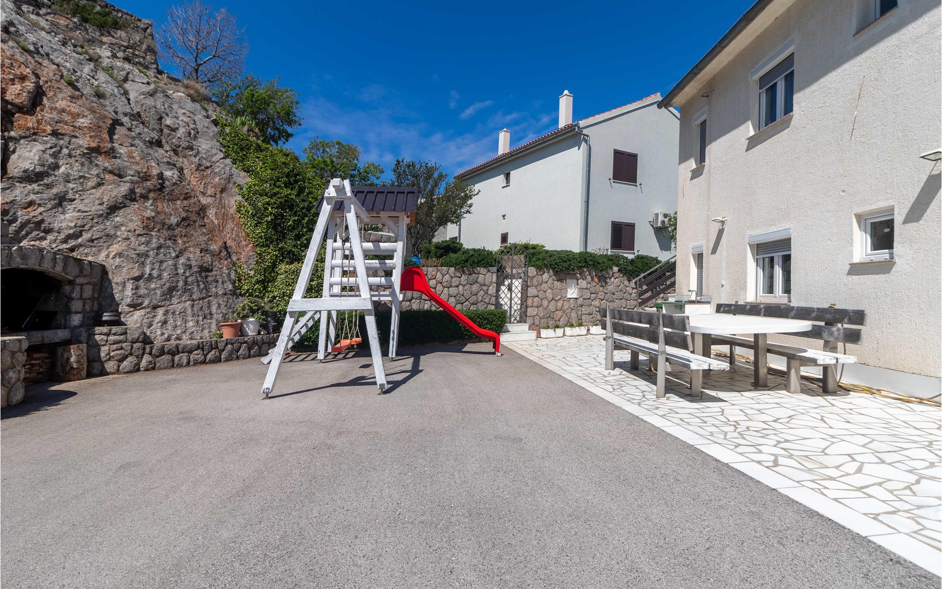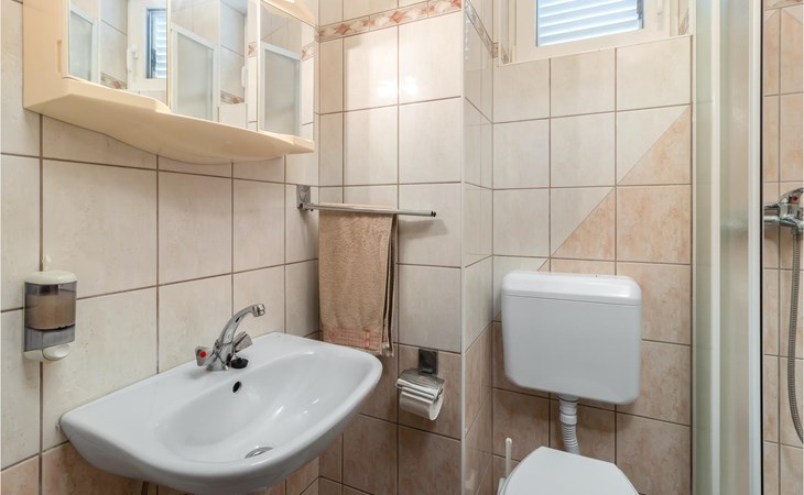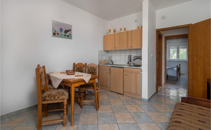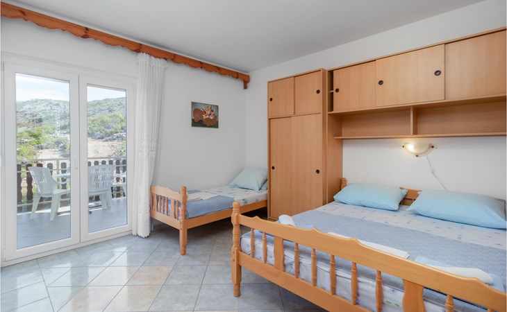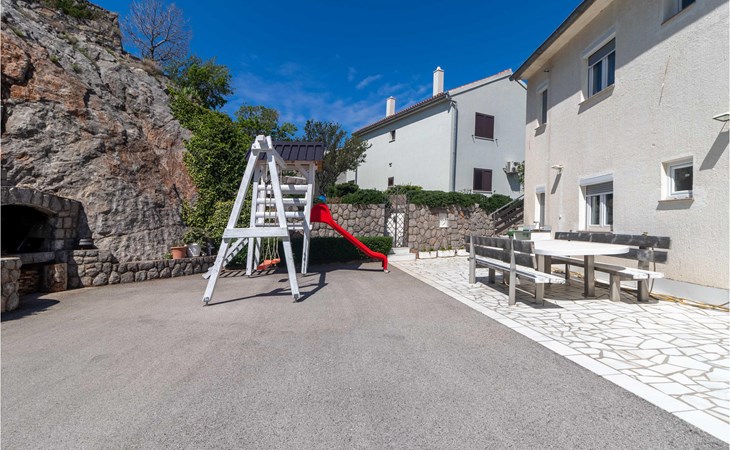 Welcome to Sveti Juraj and this tasteful house with two apartments. Together with your extended family or several friendly families you can feel comfortable and relax here. The apartment is rustic and well equipped and will not leave you missing anything. Especially great is the spacious balcony, from which you can enjoy the view of the sea and the offshore islands. Come here to play or eat together or also enjoy the communal garden, where playground equipment, a dining table and barbecue are waiting for you.