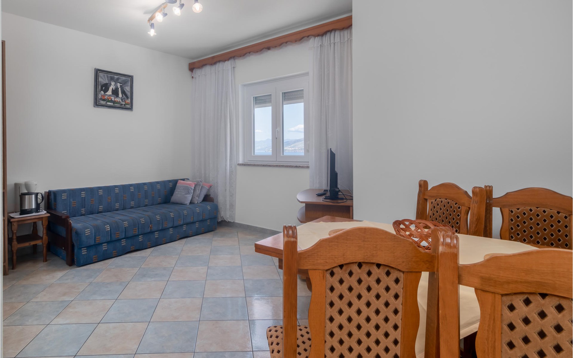 Enjoy a great view of the sea from this large vacation apartment.