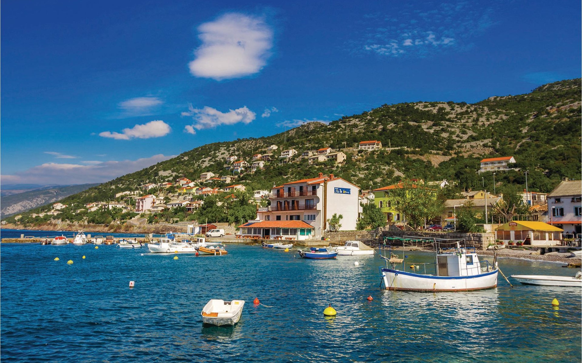 In the morning, pack your beach bag and walk the few minutes to the pebble beach. Dive into the crystal clear waters, snorkel along the shore paddle over to the small island of Lisac. Also visit the Zengg or hike in the green hinterland of the coast.