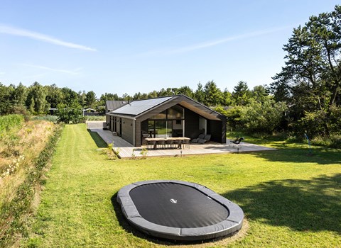 If you want to really enjoy your vacation, you can already look forward to this luxury house. Here you can expect modern interior and a beautiful, consistently carried out with delicious materials both outside and inside. In the kitchen you can develop culinary according to your own wishes, because you will not lack equipment. With two ovens, you can also easily invite your friends for a big meal, or maybe you should celebrate Christmas here this year? In the living room you have plenty of space around the dining table and when you're done with a long walk by the sea, you can lie down on the sofa and relax nicely. On cool days you can warm yourself by the fireplace and make it cozy here.