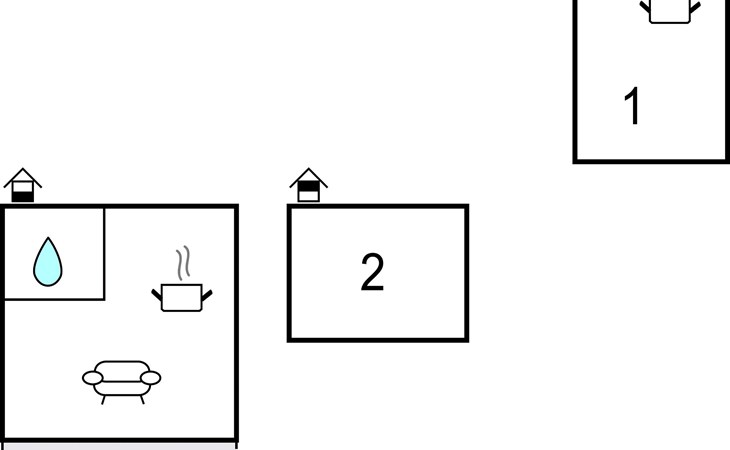 Here you will find a cozy cottage divided into 2 houses and surrounded by lush greenery. The biggest house is completely renovated and has a kitchen, a bathroom and a living room with a sleeping loft. The second cottage is about 40 meters away and has a bedroom with a double bed. From the terrace you can enjoy the sun almost all day from morning to evening.