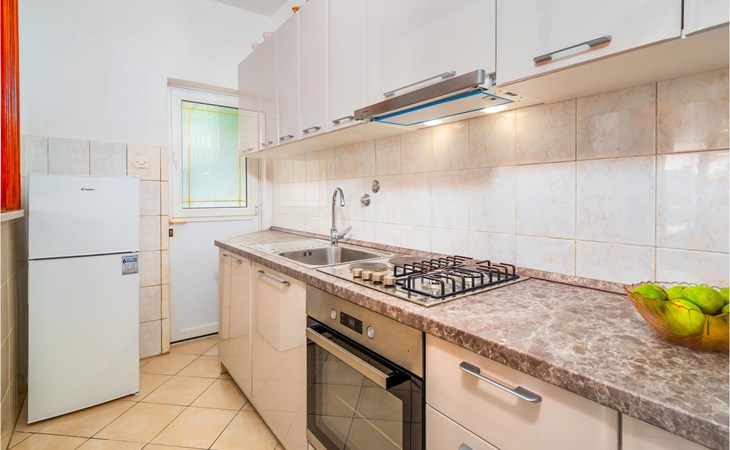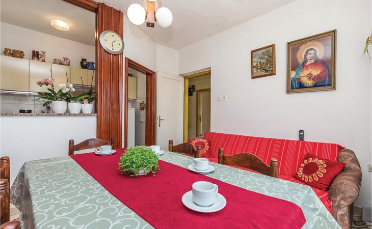 In quiet village Kampor, far from traffic and noise lies this ground floor cottage. It contains three bedrooms and is simply furnished. In front of the house is a beautiful terrace surrounded by nature and greenery. There you will find garden furniture and a barbecue. The nice owner lives on the property. The island of Rab is situated in one of the sunniest regions of Europe with about 2500 hours of sunshine. The island benefits not only from sun, but also from wonderful beaches, small and pretty settlements, a crystal clear sea and from a good connection to the mainland.