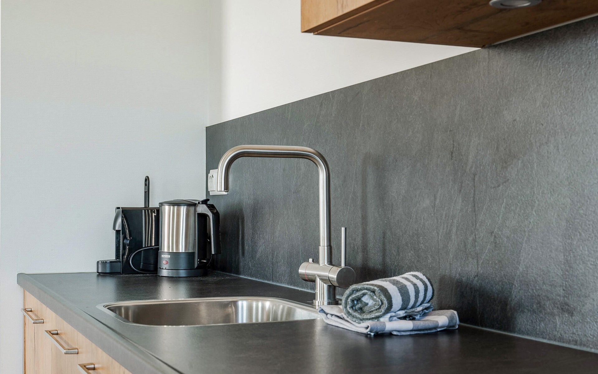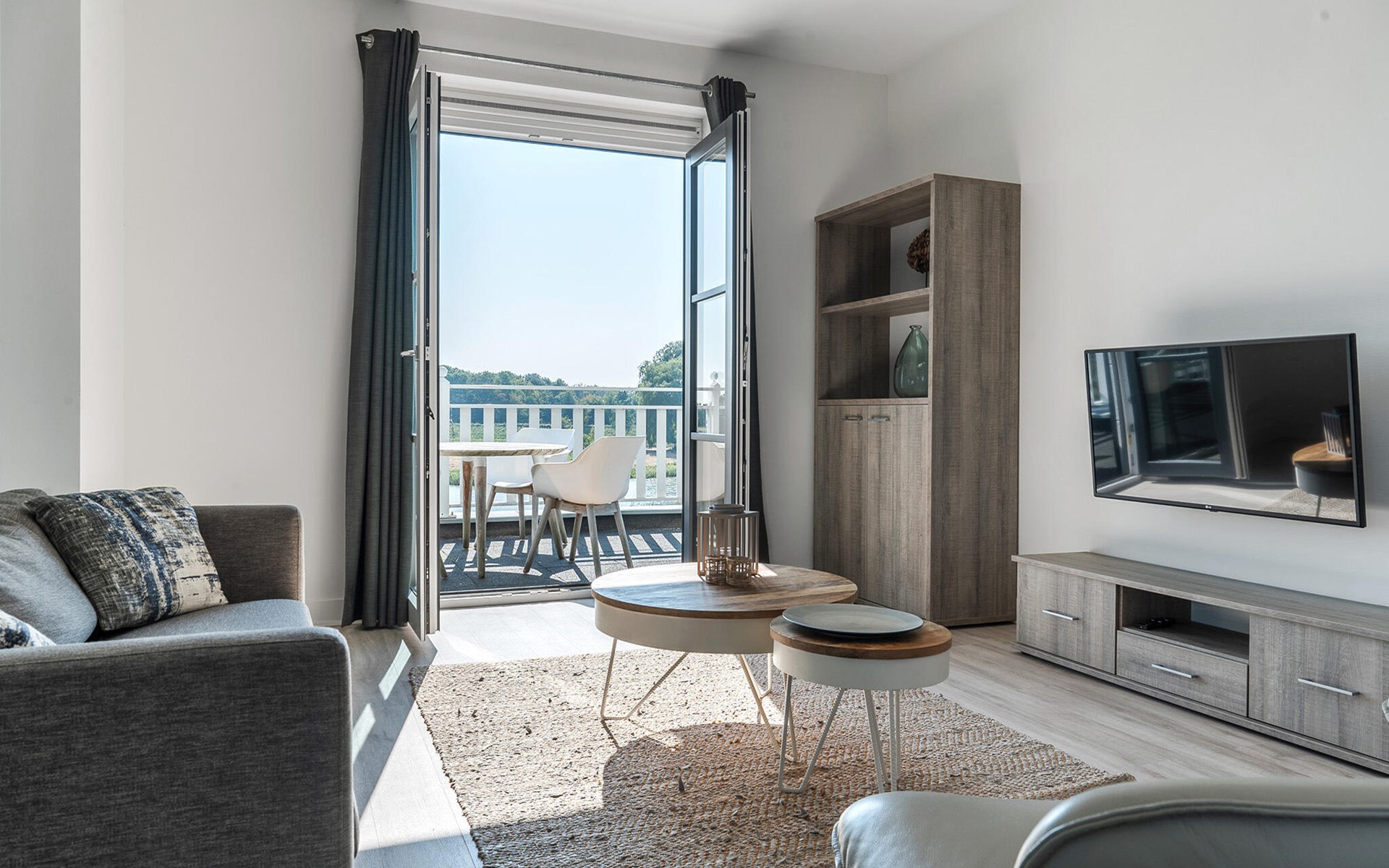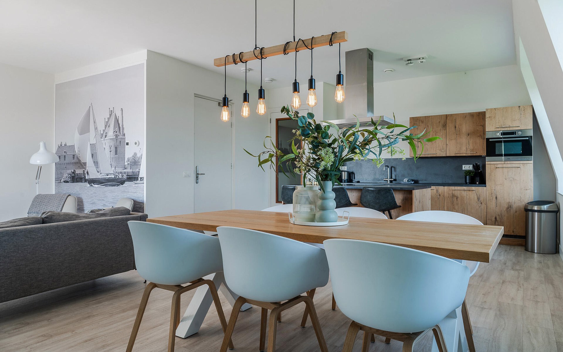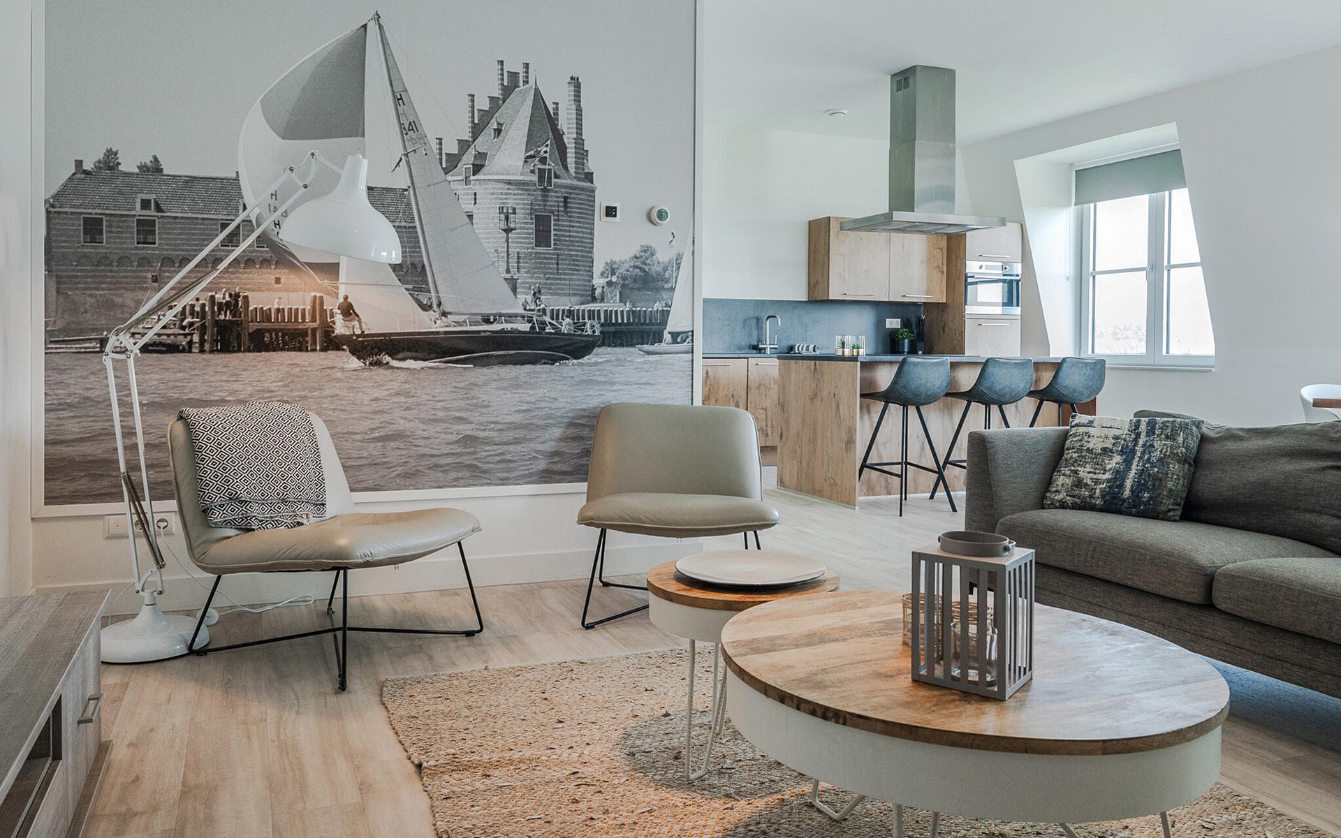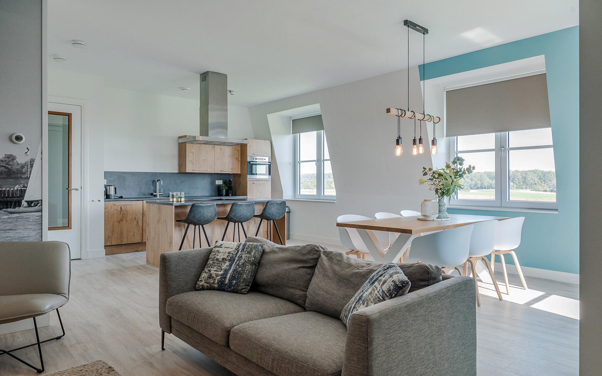 This modern and luxurious holiday apartment in an elegant apartment building offers you the perfect place to unwind. The stylish furnishings and bright, maritime ambience create a calm and inviting atmosphere. Here you have plenty of space to feel at home with your family or friends. Come together in the open-plan living room, which successfully combines the kitchen, dining and living areas and invites you to cook, eat or relax together.