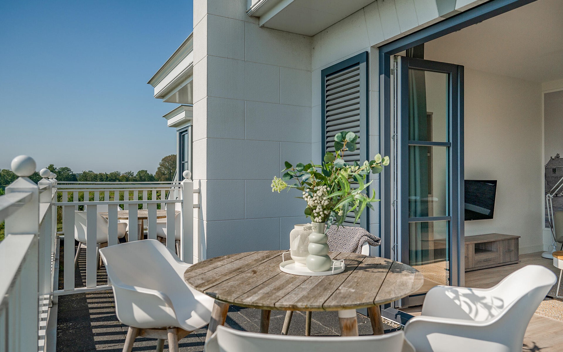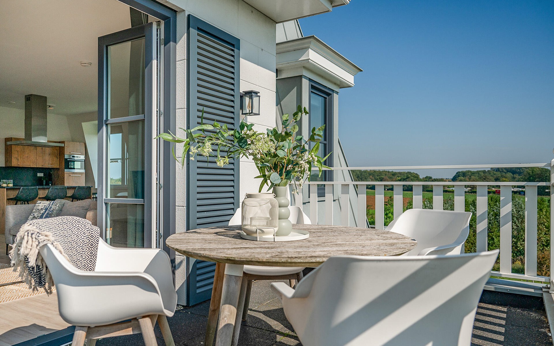 Whether on the sun-drenched terrace or the balcony with a view of the greenery, you can enjoy relaxing hours in exclusive comfort. Enjoy a marvellous view of the surrounding landscape from the roof terrace, which is shared with other guests, and relax to your heart's content in the two saunas.
