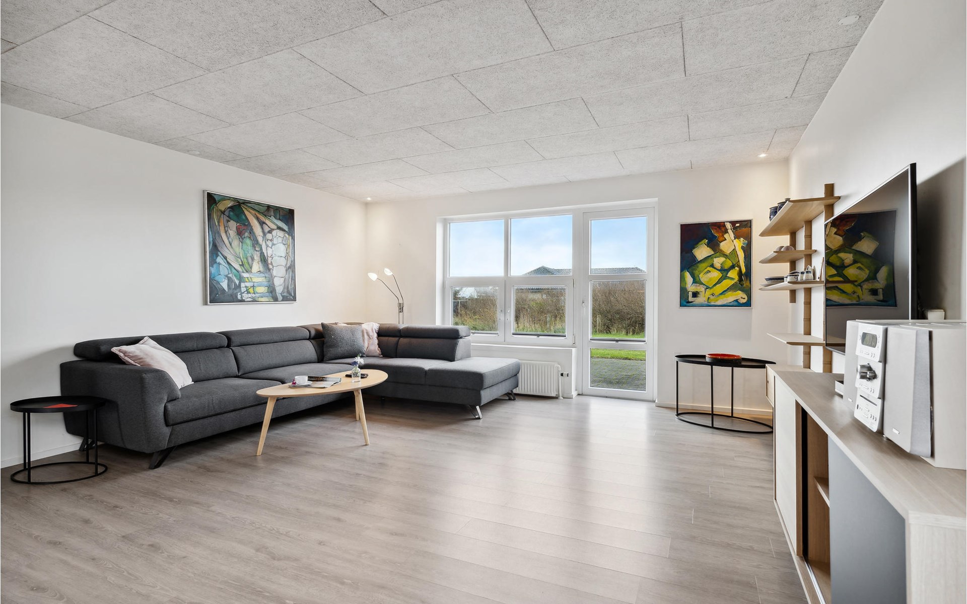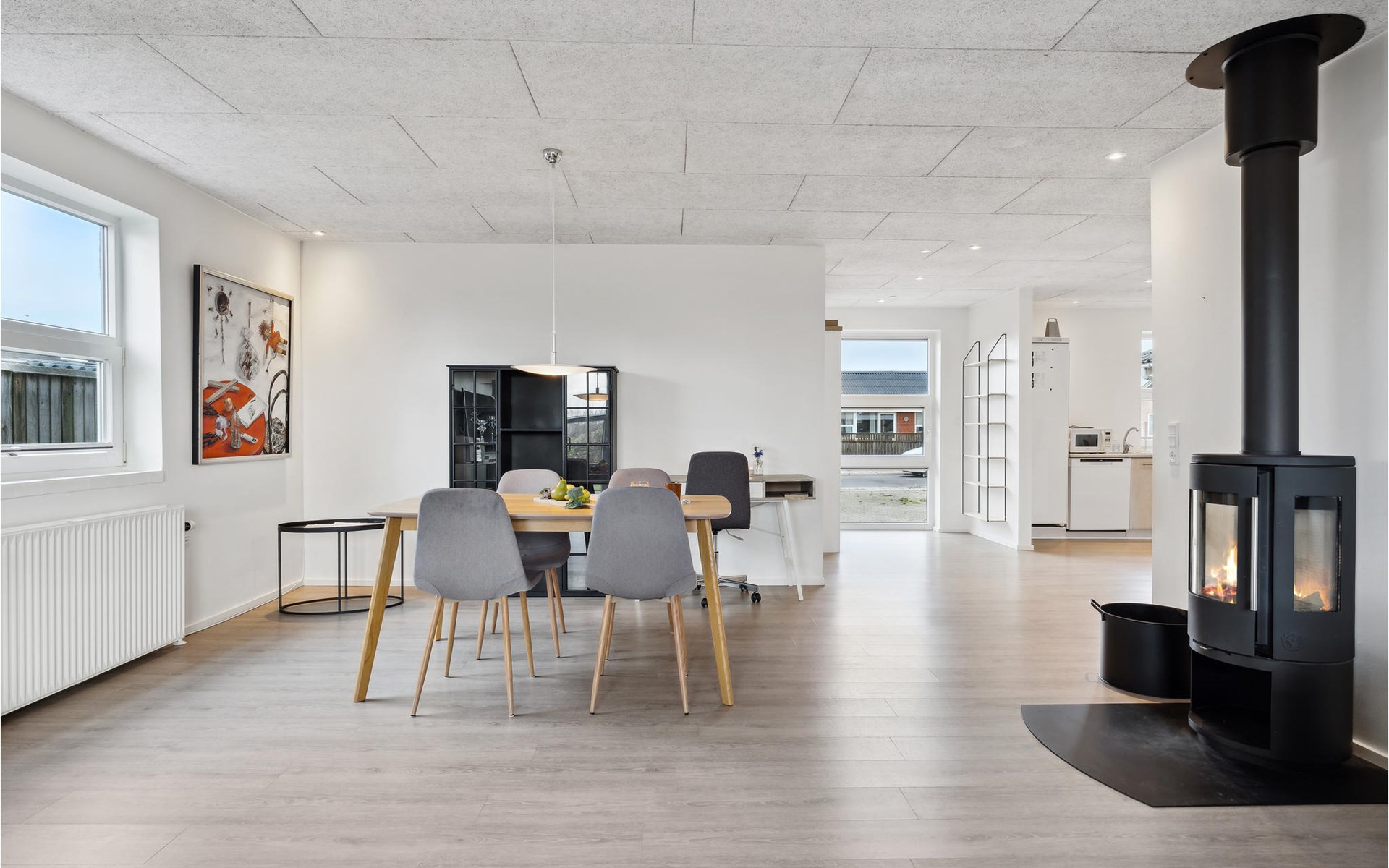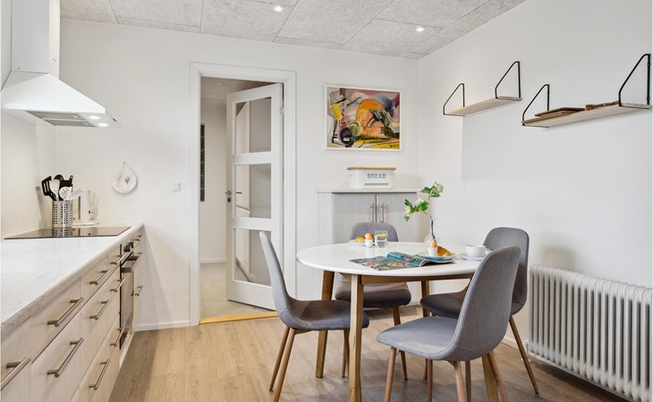 Look forward with your family to this appealing house, which creates a great living atmosphere with its bright and open rooms, where you can relax on the sofa with a fire in the stove and watch movies together in the evening. The large garden, with a covered terrace and a sun terrace invites you to spend time outdoors. Your children can play, run and let off steam on the large lawn.