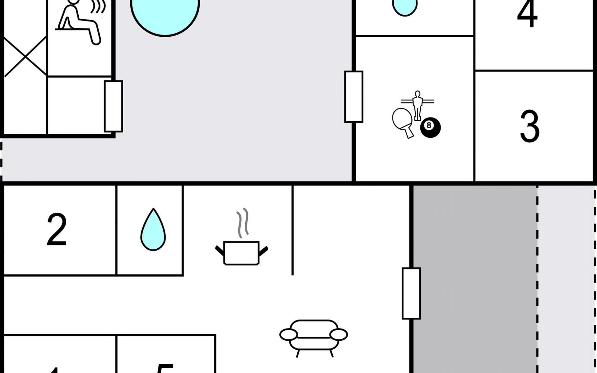 The terraces in the garden invite you to relax. Here you also have a Finnish wooden bath, the sauna and an outdoor shower at your disposal.