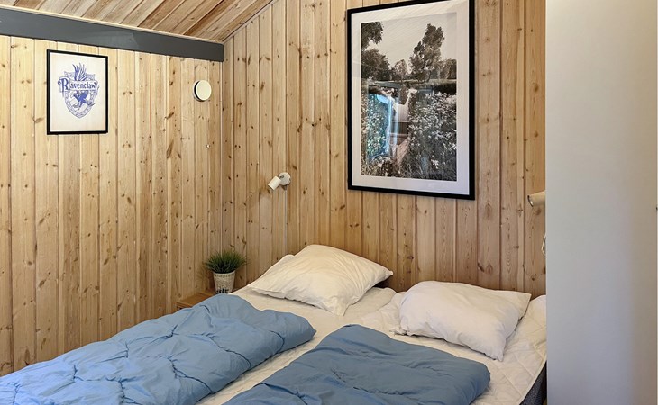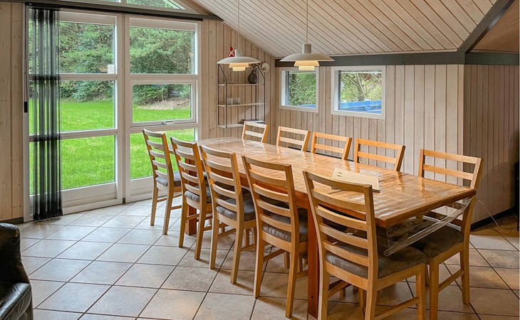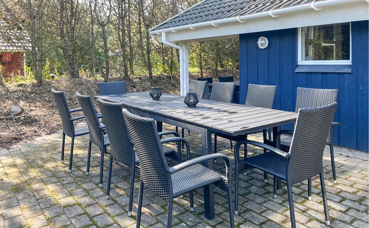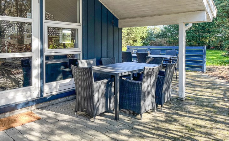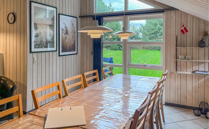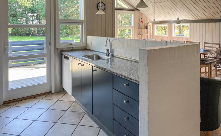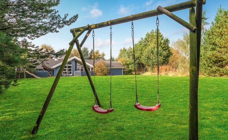 Beautiful cottage on undisturbed property with play castle, swings and a sandbox with toys. The cottage also has a nice spacious bathroom, which is equipped with a luxury whirlpool and sauna. All bedrooms have TV, game consoles can be connected. From the generously sized kitchen-living room with clinker brick, underfloor heating and wood-burning stove you come directly onto the tiled, wind-protected terrace. The house is uniquely beautiful and conveniently located within walking distance of the activity center, bouncy castle, stores and a restaurant. It is not far to the forest Blåbjerg Plantage with signposted paths and herds of crown deer.