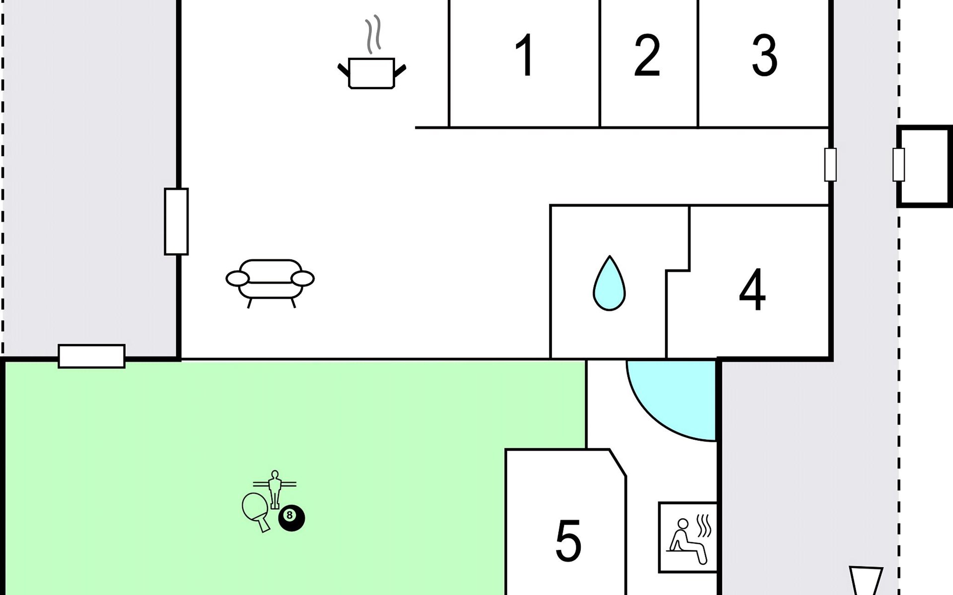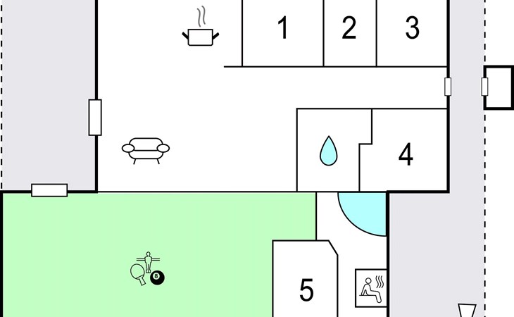 Here, a short distance from the roaring North Sea and the seemingly endless sandy beaches, one of the area's most beautiful panoramic views of Ringkøbing Fjord opens up from this vacation home, which is nestled on two levels in the large, hilly dune bottom. The house is tastefully decorated, in a modern style with beautiful laminate floors in all rooms. The style throughout creates a pleasant atmosphere throughout the house. Both bathrooms are equipped with underfloor heating, and one serves as a wellness room with infrared sauna and whirlpool. In the large activity room the whole family can spend fun and entertaining hours with possibilities like table tennis, air field hockey and billiards. But you can also be well active outdoors here. All kinds of water sports can be enjoyed in the fjord, and you can take surfing lessons at the nearby surf center. It is 300 meters to the nearest fishing lake and 16 km to the nearest golf course. Visit Kabelparken in Hvide Sande, you can water ski and wakeboard there. There are beginner lessons there every day.