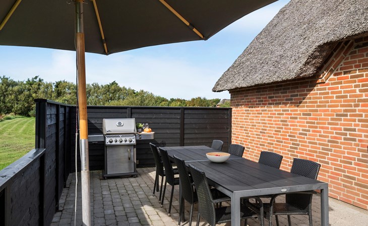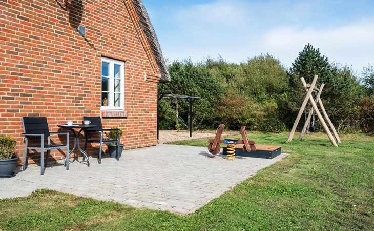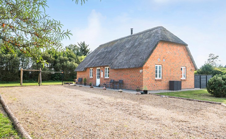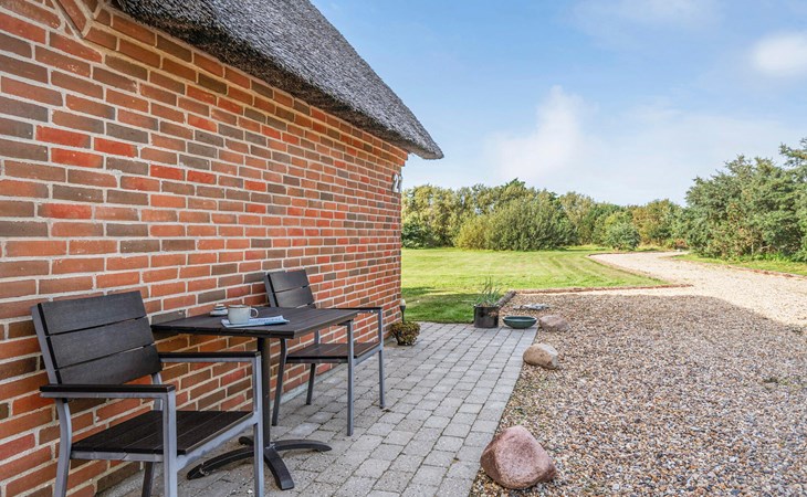 Take a vacation in the quiet cottage settlement Vedersø Klit, in an idyllic cottage with a thatched roof.