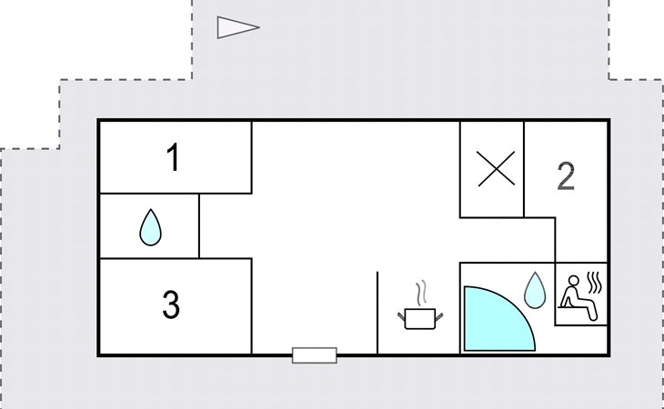A nice stay you will have in the large open kitchen and living area, which by its central location ensures that the house is well suited for 2 families, as the four rooms are located on both sides of this space. In each end there is also a bathroom, one is equipped with washer and dryer as well as whirlpool for 2 persons and sauna. A terrace screened by a closed fence invites you to relax in the sun.