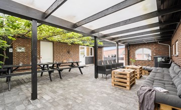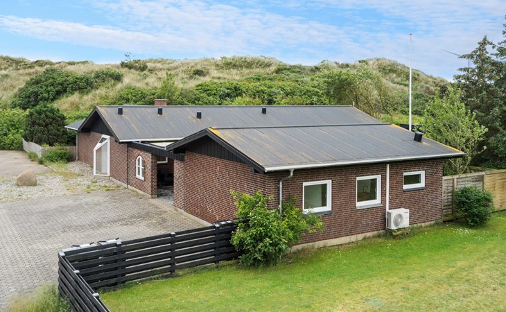 This spacious vacation home with a cozy, covered terrace is centrally located in Hvide Sande.