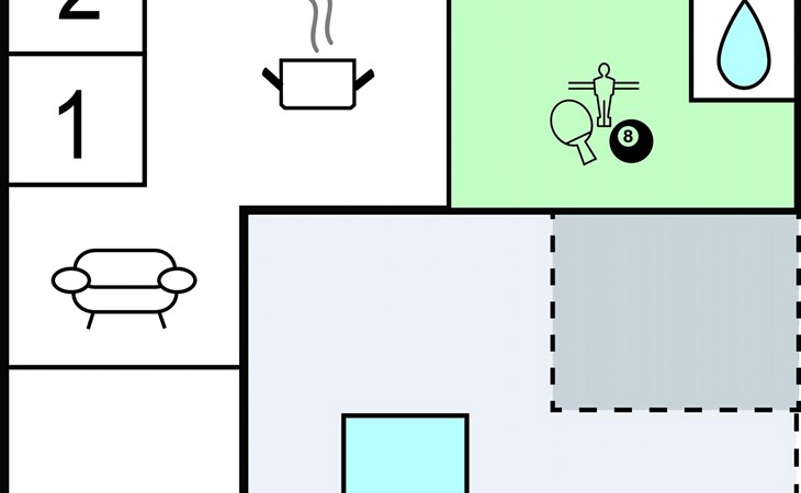 This exclusive and energy-friendly holiday home offers you everything you need for a relaxing holiday. The light-flooded rooms and high-quality furnishings create an inviting atmosphere. A large eat-in kitchen and numerous bedrooms offer space for family and friends. The activity room with table tennis, billiards and video games provides entertainment, while the spacious terrace with covered area invites you to linger.