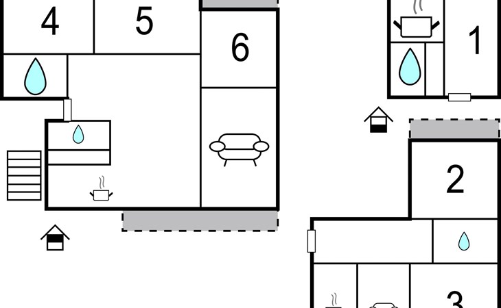 Your holiday home offers you peace and relaxation and gives you the opportunity to concentrate on the essentials. It consists of three accommodation units with their own entrances, two of which are located on the ground floor and one on the first floor. One unit is designed for 2 people, one for 4 and the one on the 1st floor for 6 people. Each unit has a washing machine and dishwasher.