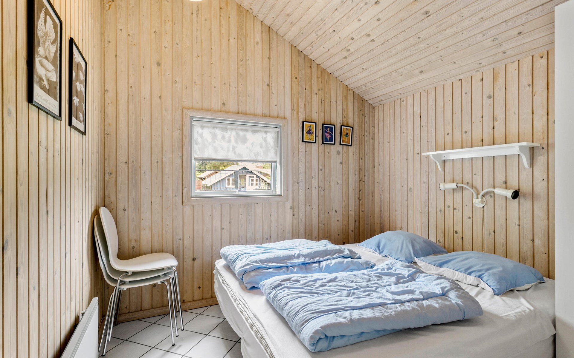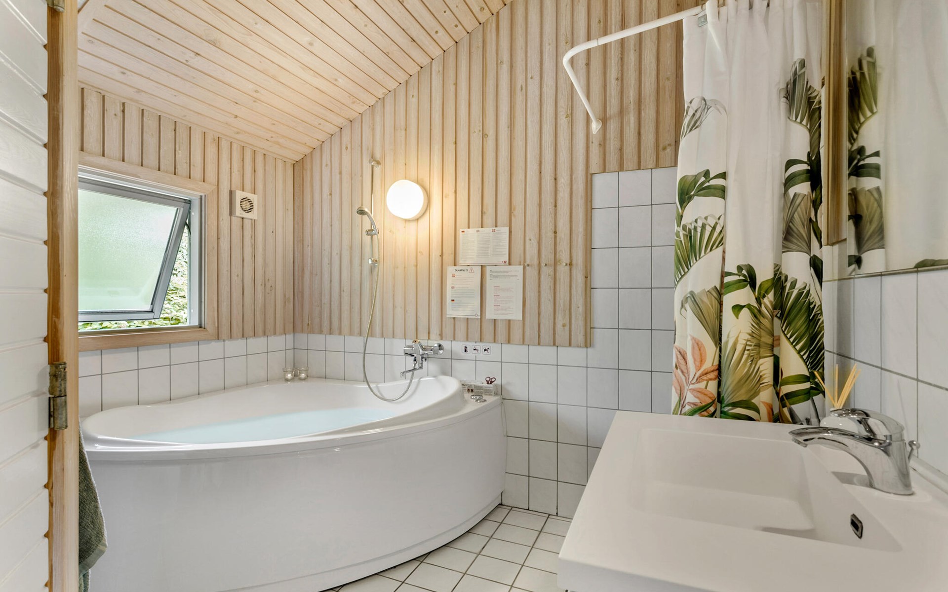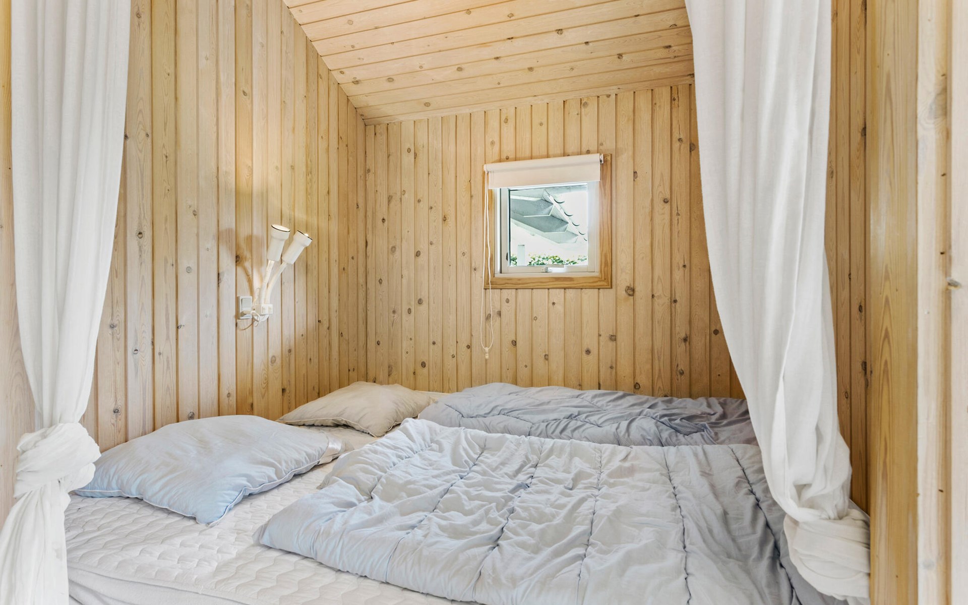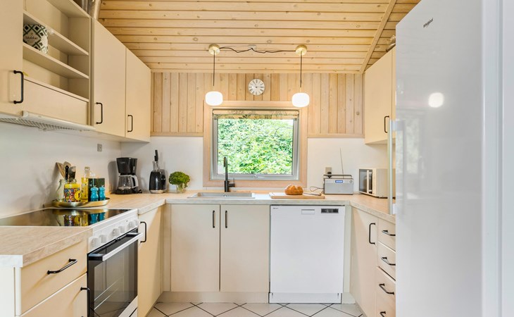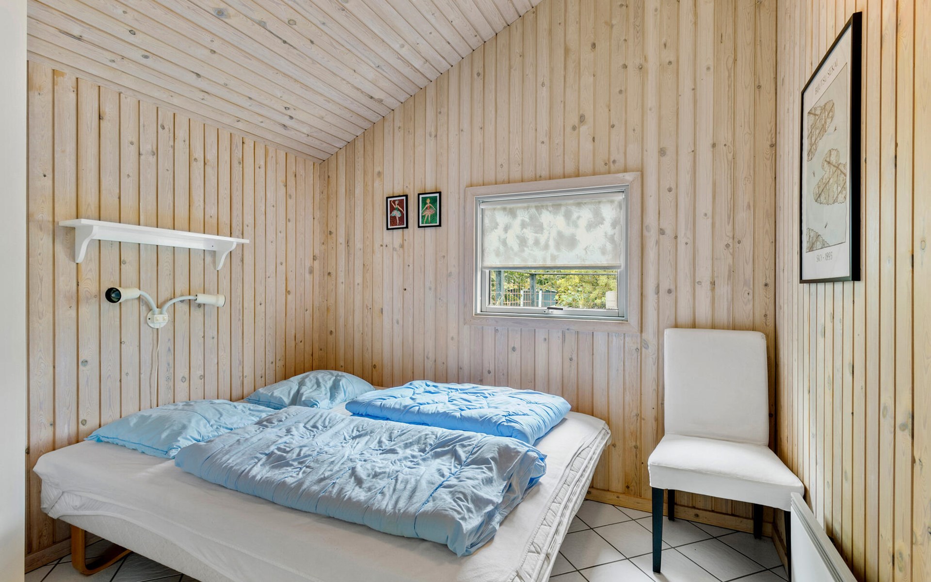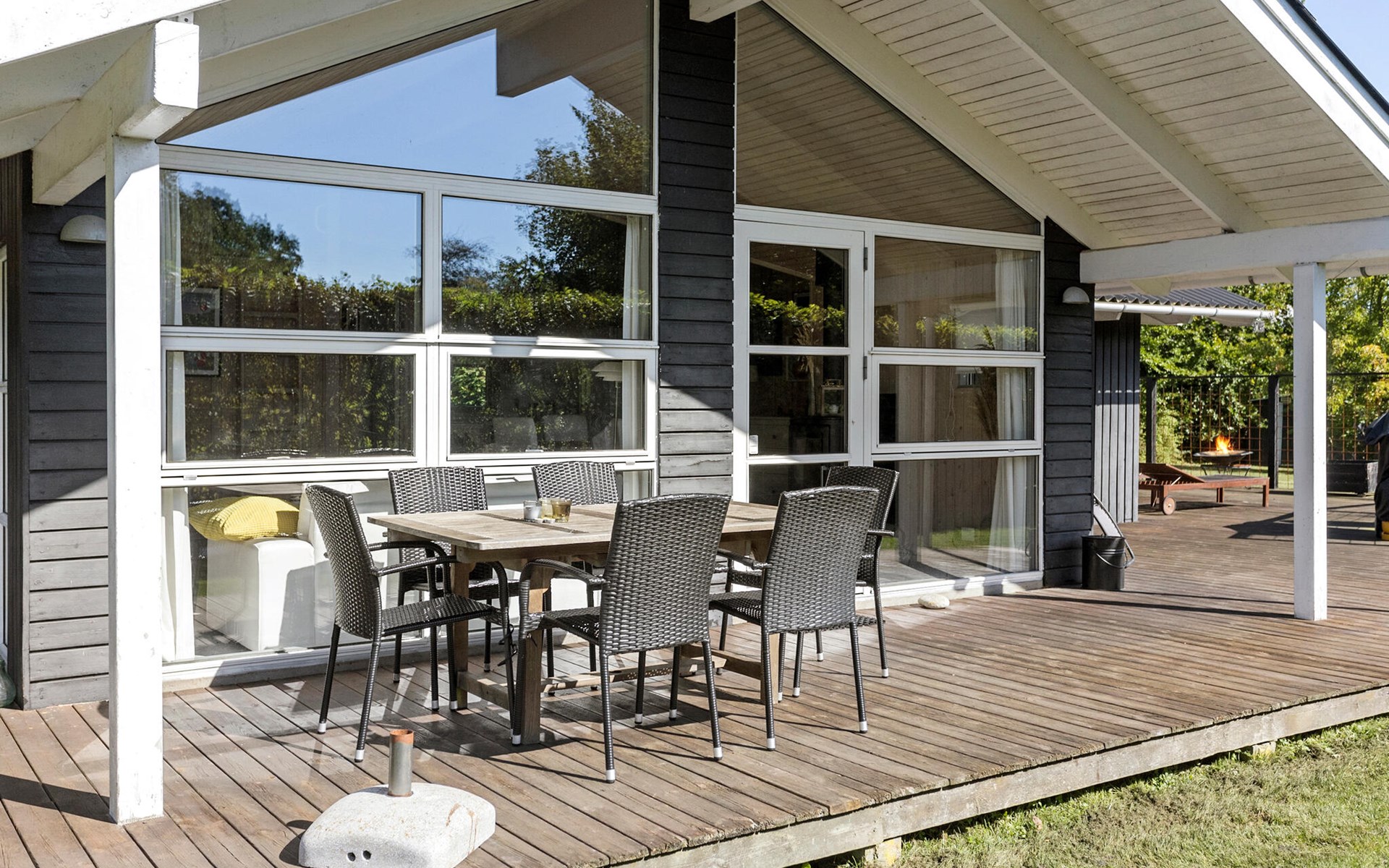 Located in the Bukkemose cottage area on the east coast of Langeland in picturesque surroundings, this beautiful wooden cottage is just 1.5 km from Langelands Golfbane clubhouse and 1 km from the Put and Take lake. There are tile floors with loose carpeting throughout the house. Two of the eight beds are in the alcove in the entrance hall. Here you will find really good opportunities for swimming and fishing from the shore. Large, beautiful open terraces and covered wooden terrace where you can enjoy the sun. On wet days you can find shelter under the smaller covered terrace. In high season a bathing jetty is set up at the water's edge.