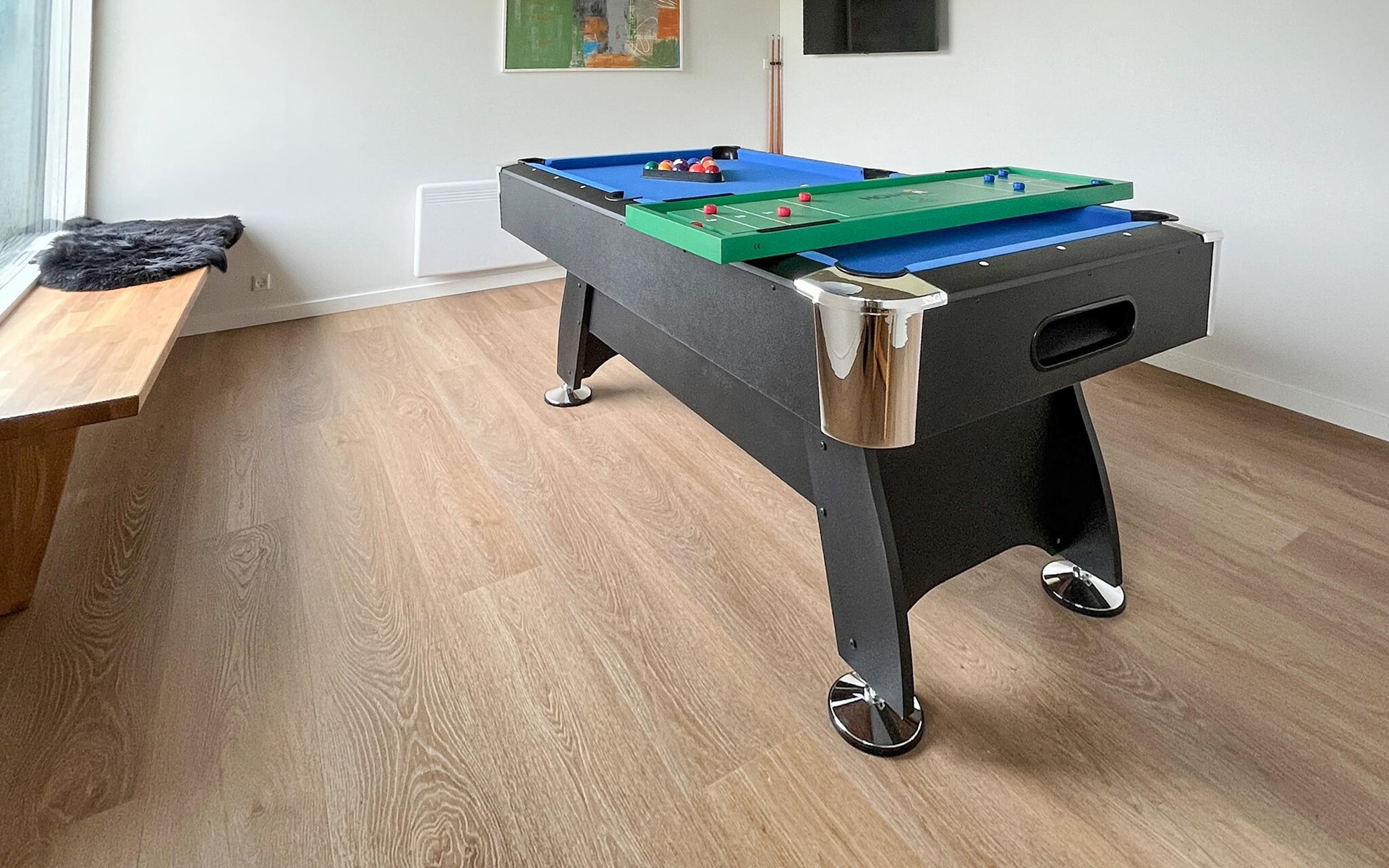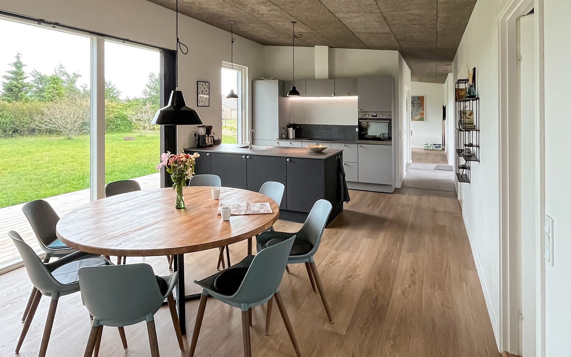 In this comfortable house, floor-to-ceiling windows, a warm wooden look and stylish furniture create an ideal atmosphere to relax and recharge your batteries. Relax with a film or games evening, test your skills at billiards or cook delicious meals for yourself and your fellow travellers in the modern kitchen.