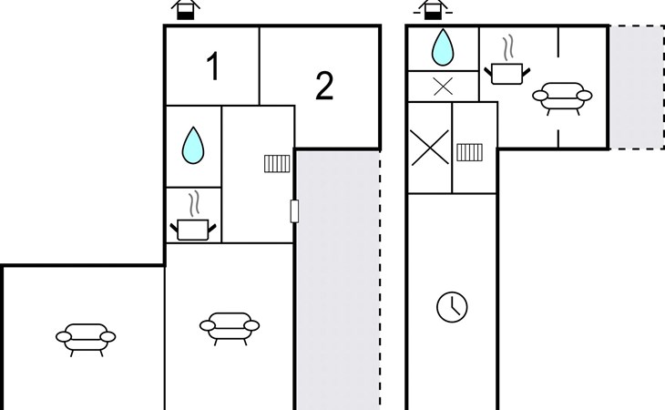 A modern bathroom with tub and the two bedrooms are on the same level as the small but efficiently equipped kitchen. An interior staircase leads to a slightly downstairs and separate apartment with the second bathroom, a spacious kitchen with gas stove and a winter garden with seating and sleeping for two people. From the winter garden you can also reach the terrace and the garden.