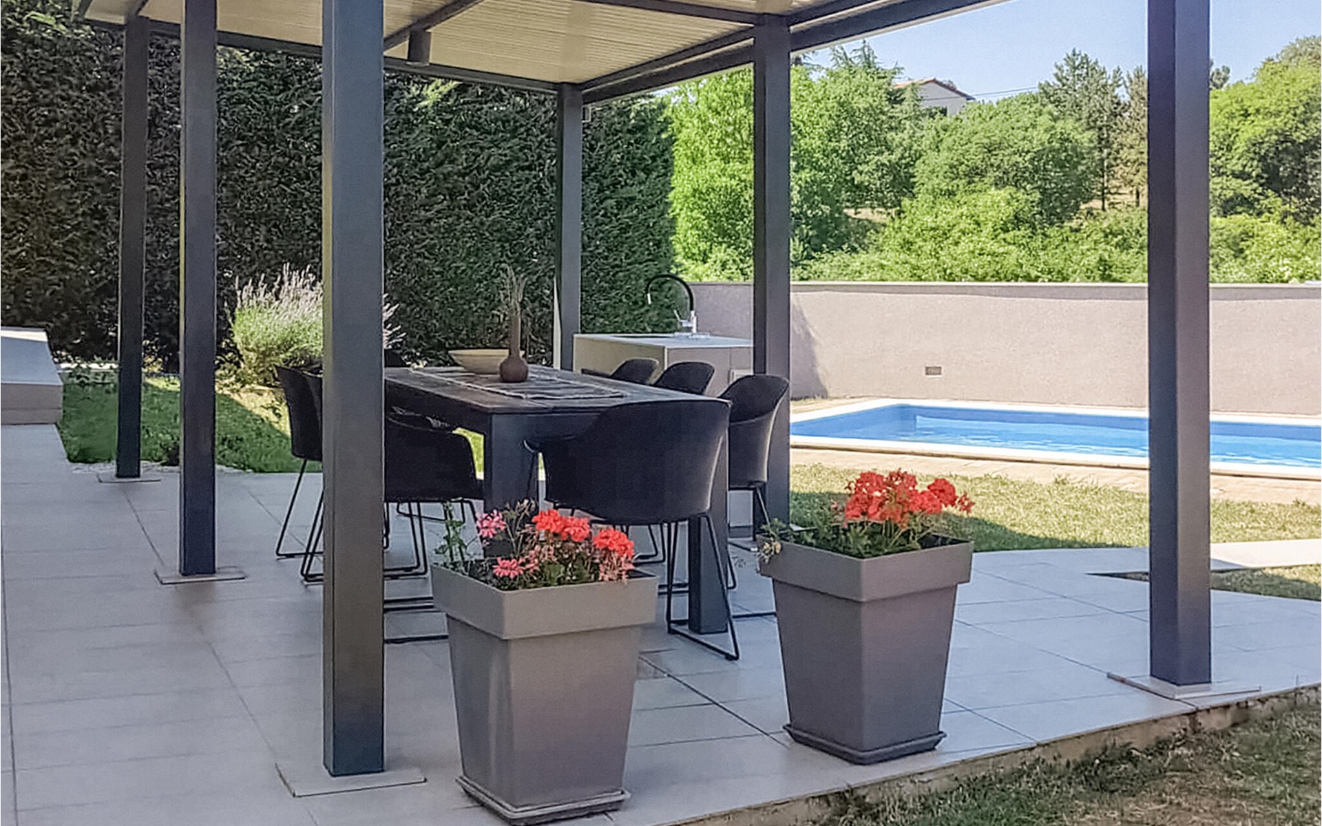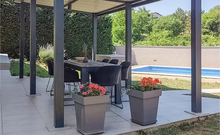 Located in the quiet village of Mali Golji near Labin, your cozy vacation home welcomes you with a rustic, authentic ambience. This traditional Istrian house offers you pleasant indoor and outdoor areas. A tavern atmosphere is created in the cellar with its large open fireplace. Prepare your breakfast in the morning in the spacious wooden kitchen and take it to the gazebo with dining table and garden furniture. From here you have a view of the fenced garden and the beautiful outdoor pool, which offers refreshment. The brick barbecue, where you can prepare your favorite dishes, promises cosy barbecue evenings.
