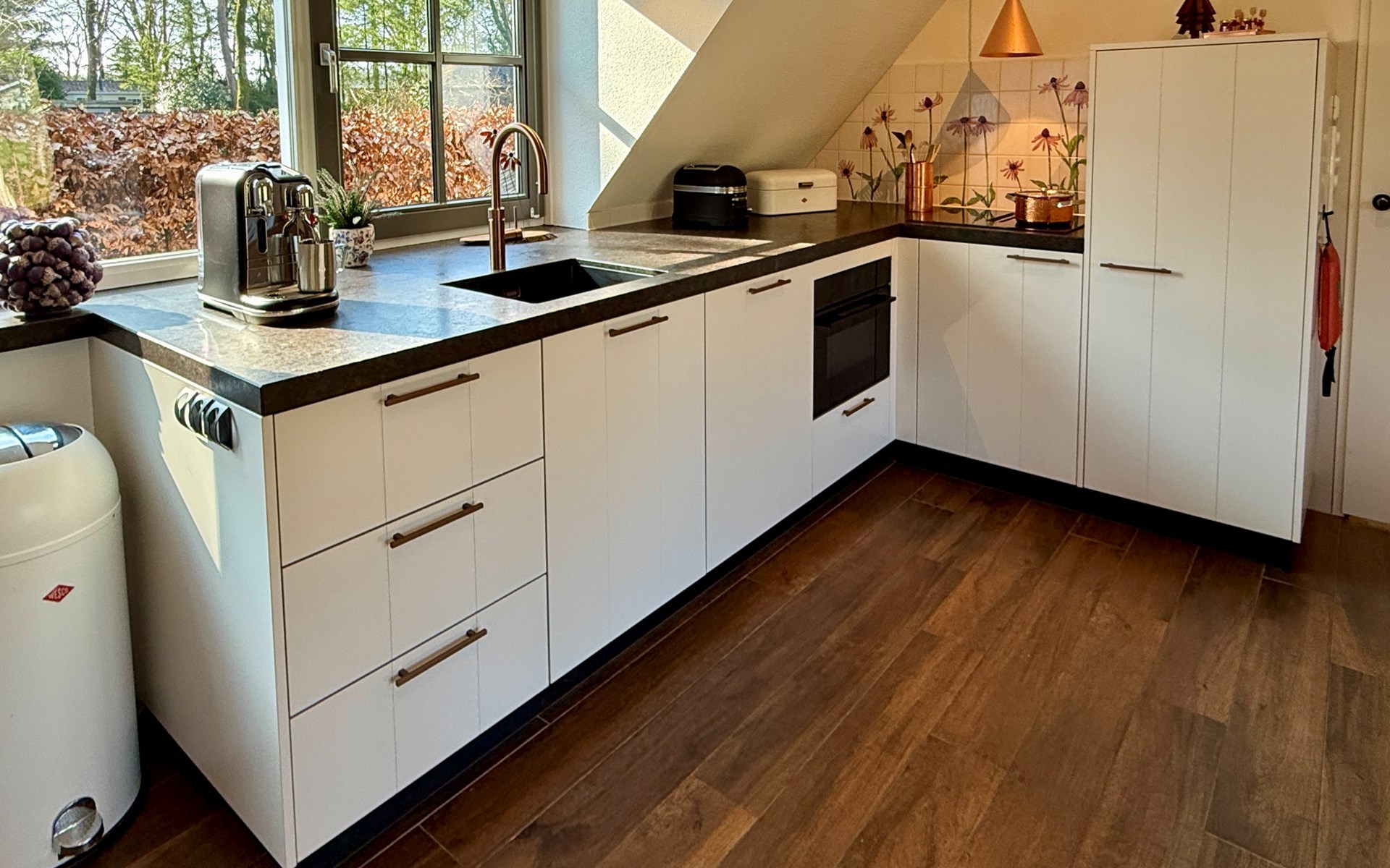 The kitchen has been completely renovated and features a spacious refrigerator, Quooker, induction hob with oven/microwave combination, dishwasher, and deep drawers for easy access. A hammock also invites you to relax. In the master bedroom, you will find a wonderfully sprung AVEK boxspring bed.