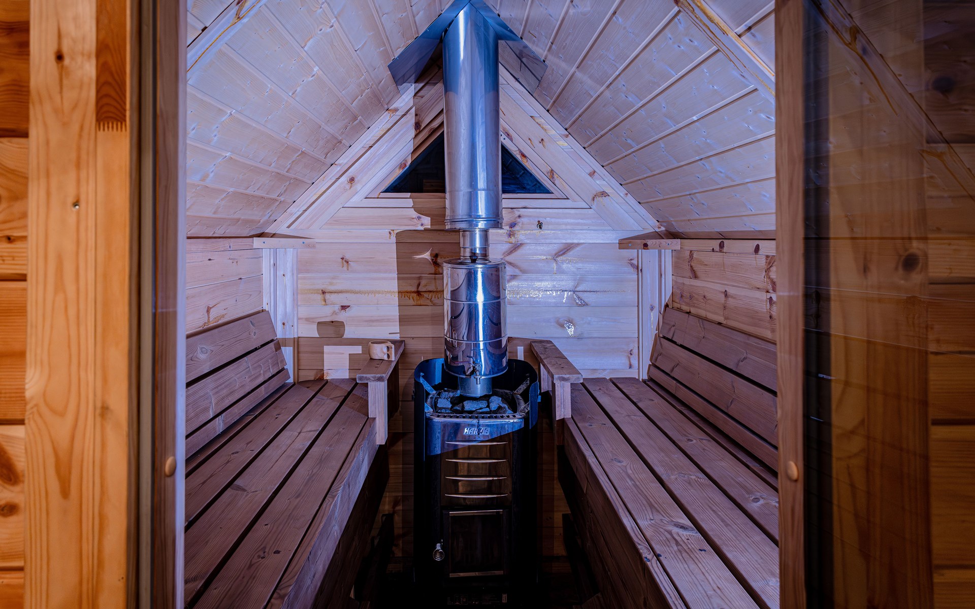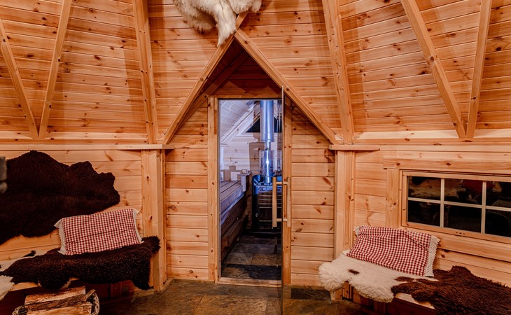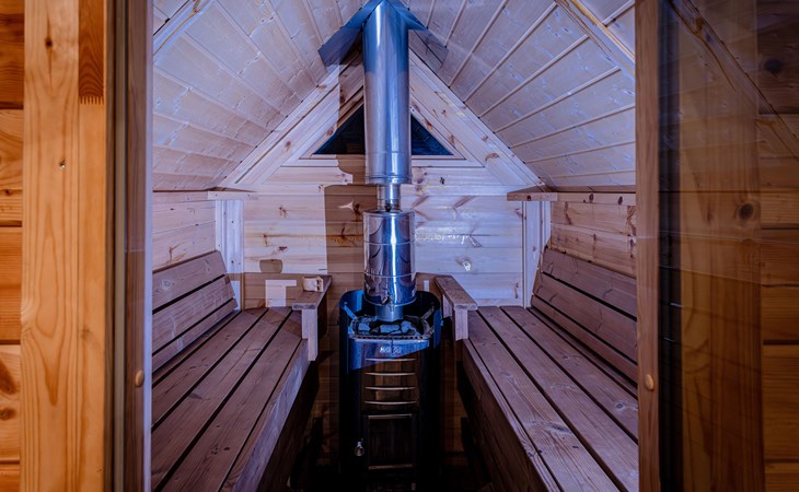 The Finnish kota is a traditional building with a large fireplace in the middle. The Finnish kota has a large fireplace in the middle. It's a great place to enjoy a drink, socialize, and relax with friends, family, or colleagues while sitting by the fireplace. The Finnish kota is equipped with its own sauna. The sauna is heated by a wood stove. A unique experience.