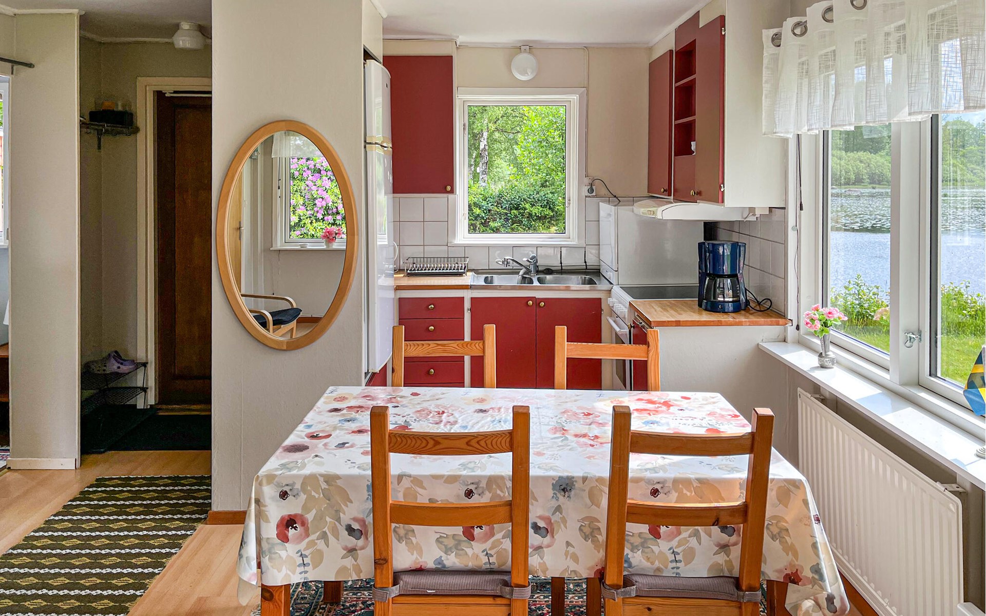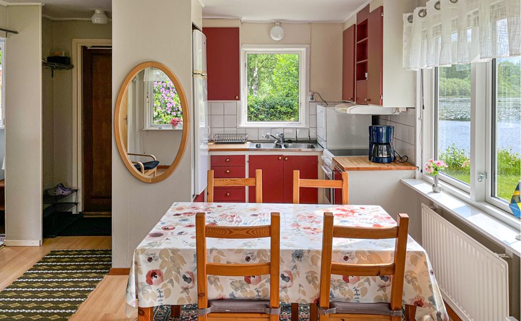 This cute little cottage is located just a few meters from the lake. From the veranda you can see the water and, depending on your mood, either spontaneously or planned, go out on the lake with the house's own boat. Feel free to take your fishing rod with you, because who knows, maybe you will catch dinner on such a nice ride. Let the peace and quiet take its toll on you.