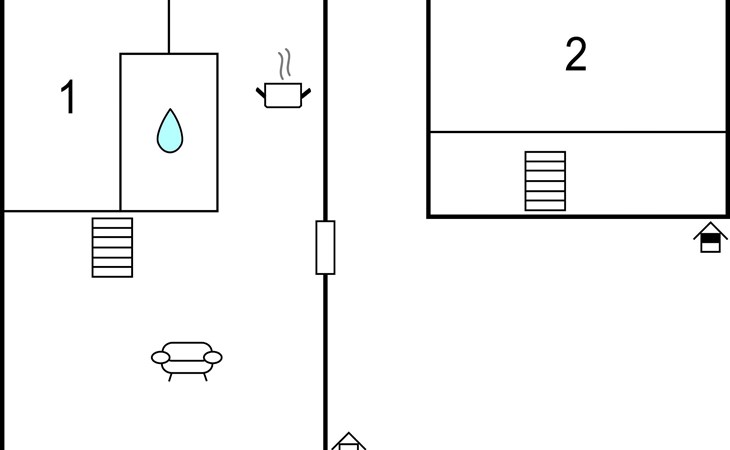 You enter the house through the living room with large windows and a wonderful light. Here you will find both a dining area and a sofa group to relax. The well-equipped kitchen opens to the right and next door you will find the bathroom and the bedroom. Steps lead you to the attic, which has a real bedroom with a door. From the front door it is not many steps down to the water and the bridge. Here you can swim off the cliffs as well as fish. The homeowner also rents boats and canoes for trips on the lake. The homeowner can also order various adventure packages on site.