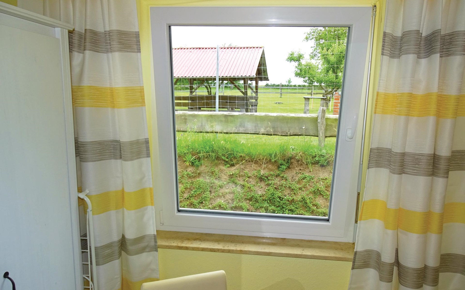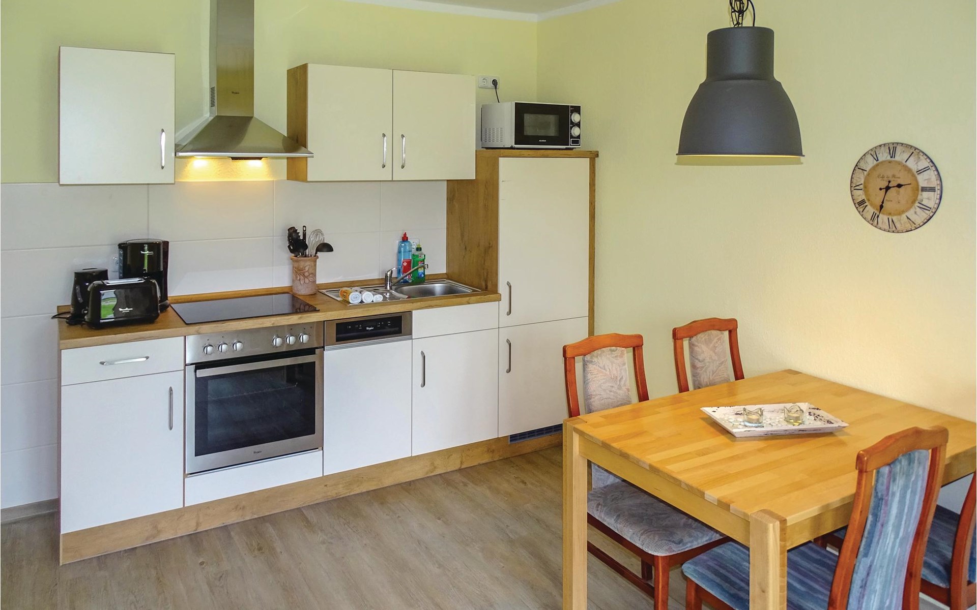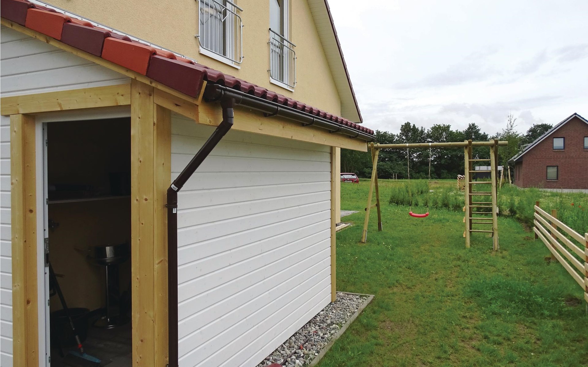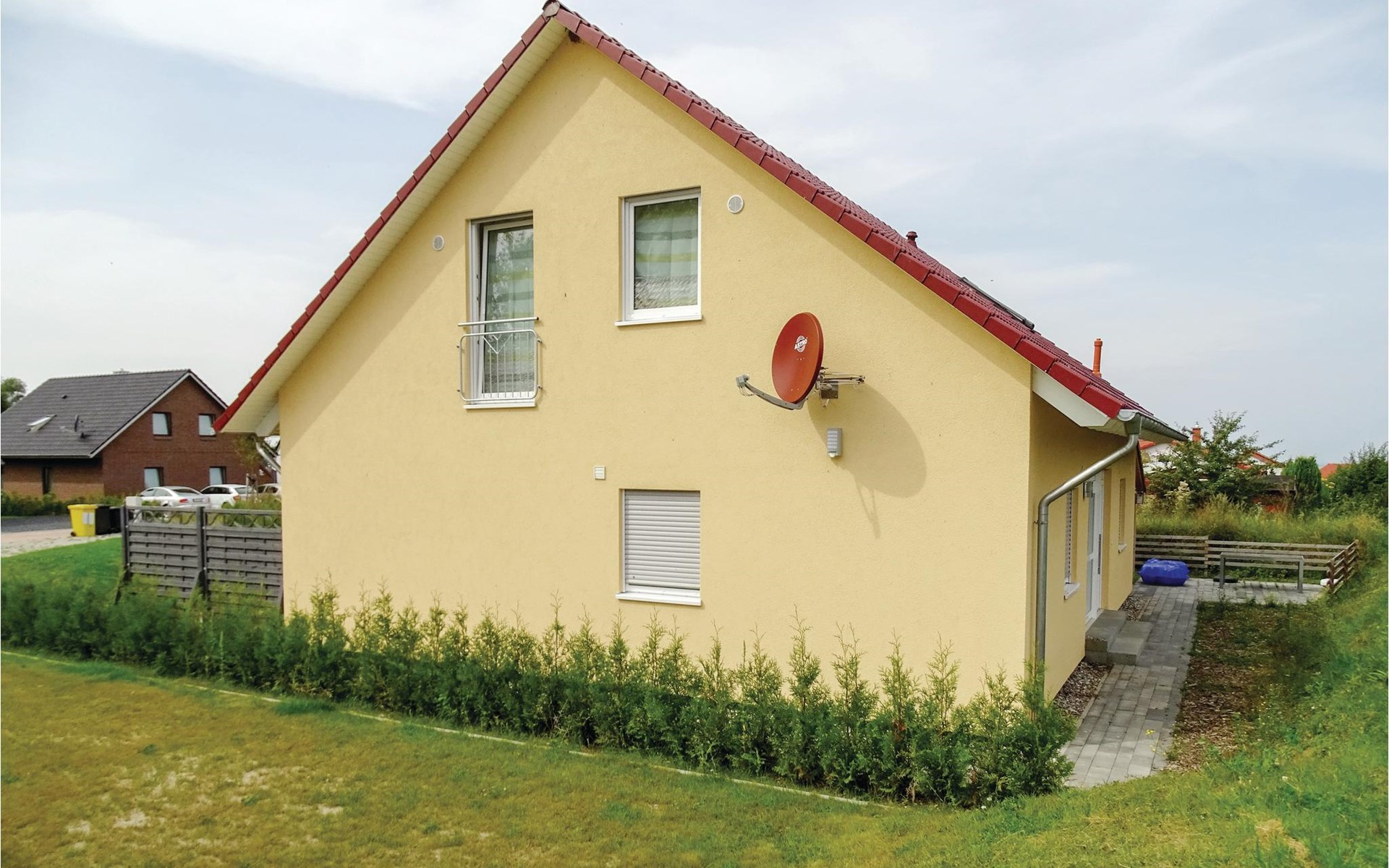 This vacation apartment welcomes you on the first floor of a modern house, which includes a total of three accommodations (see also DMK527 and DMK528). The apartment has its own terrace for barbecuing. A shared sauna on site can be shared free of charge. Boiensdorf is a small village located between the port city of Wismar and the Baltic Sea resort of Kühlungsborn. The nearby Baltic Sea with its natural beach offers opportunities for long walks. Nearby there are also various horse riding facilities and surf schools. Spend a day in Kühlungsborn, which will delight you with a 240 m long pier, its beautiful sandy beach and a 3.2 km long beach promenade. From here, you can also take a detour to Heiligendamm on the historic Molli narrow-gauge steam train. In the other direction, Wismar attracts with its cozy old town and a large leisure pool for lots of swimming fun and relaxation. Illustrations are living examples.