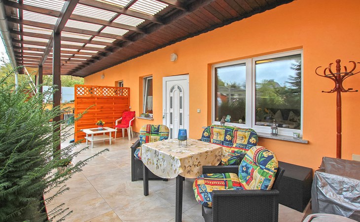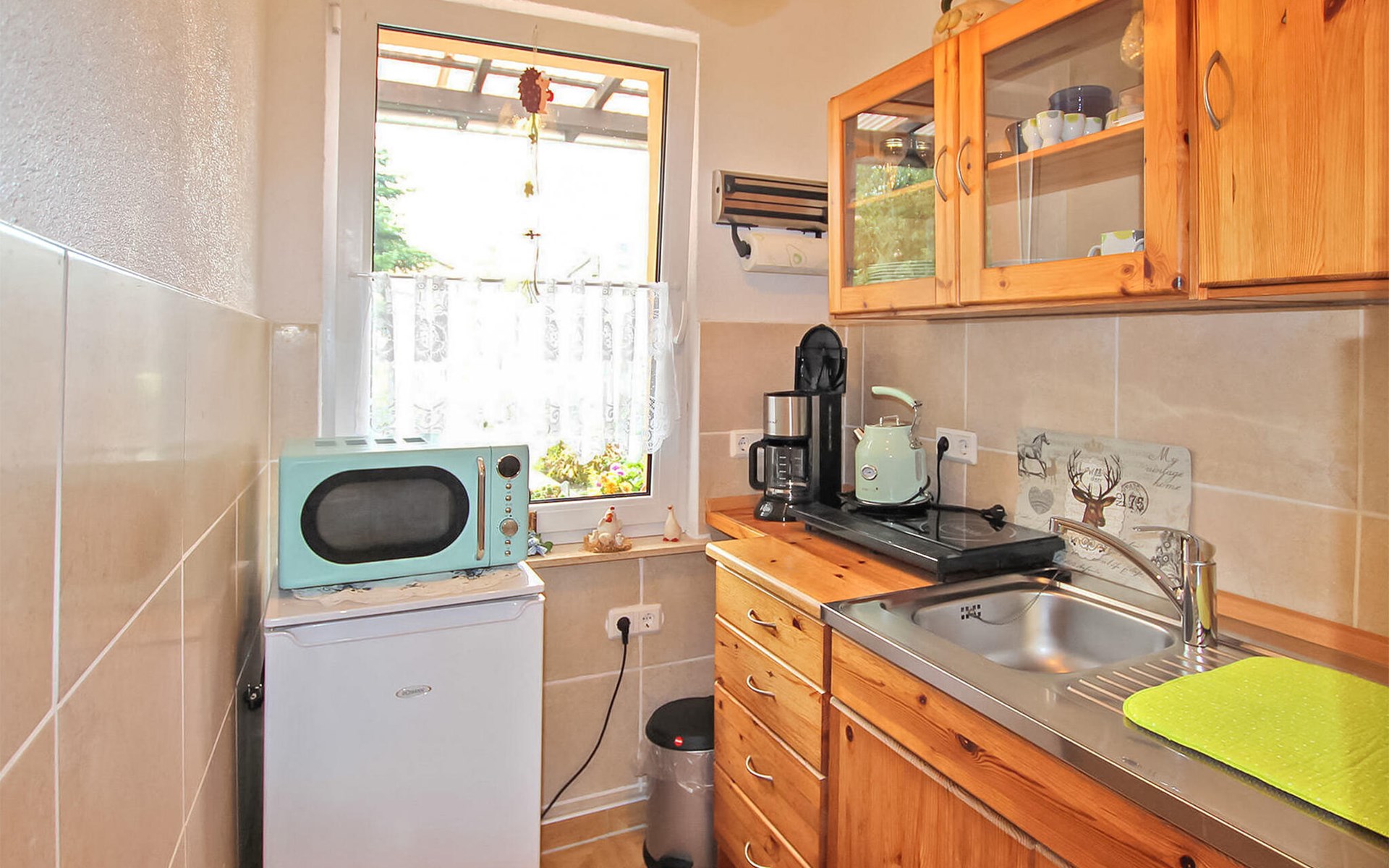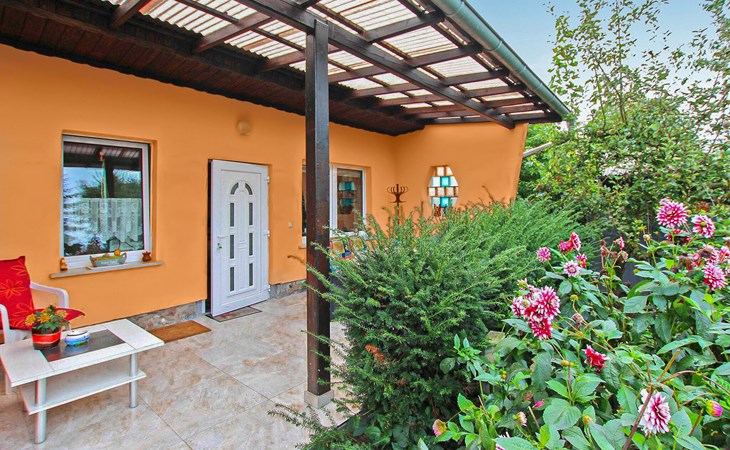 The holiday home (half of a double bungalow) for 2 people, renovated in 2019, is located in a quiet and almost rural location in a residential area at the rear of the owner's approx. 1,000 m² fenced residential property. It is approx. 1,000 m to the public swimming pool on the Müritz and approx. 2 km to the centre with the beautiful old town and the harbour (public transport). Bakery and supermarket are in the immediate neighbourhood.