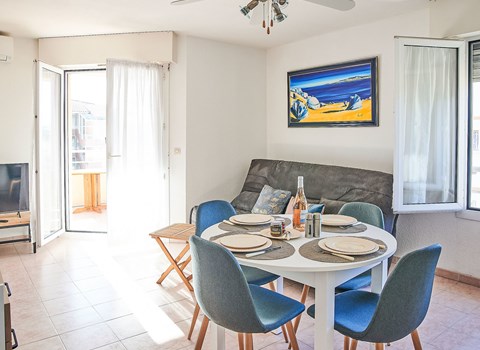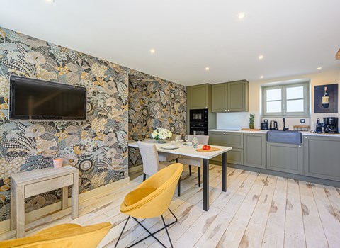 This apartment is located on the second floor of a renovated house. It has a spacious living room with a well-equipped kitchenette and a bedroom with bathroom and sea view. You only have to walk a short distance across the street and you are on the beach in the bay of Mont-Saint-Michel. When the water is high, you can swim in the unusually warm water, and at low tide you can examine the seabed of this nature-protected bay or collect cockleshells for later eating. Guided tours in this extraordinary nature are also offered. In one direction, the coastal path will take you to the picturesque harbor town of Cancale, and to the other side, Mont-Saint-Michel awaits your visit. This main attraction of France is not to be missed. A variety of exciting activities are available locally, such as beach sailing, karting, and horseback riding. In addition, the area is ideal for kite and wind surfers. The waterfront cafes will serve you delicious seafood. As a day trip destination, the Norman coast with its many historic cemeteries from the Second World War is also highly recommended. On the second floor of the house there is also FBI096, which can accommodate up to 4 people. Apartment FBI103 (3 pers.) on the first floor can also be rented. Guests of the three accommodations share a small laundry room with washing machine.