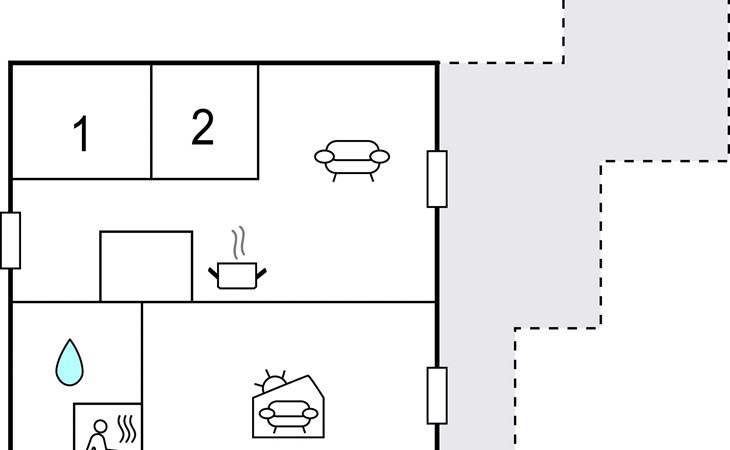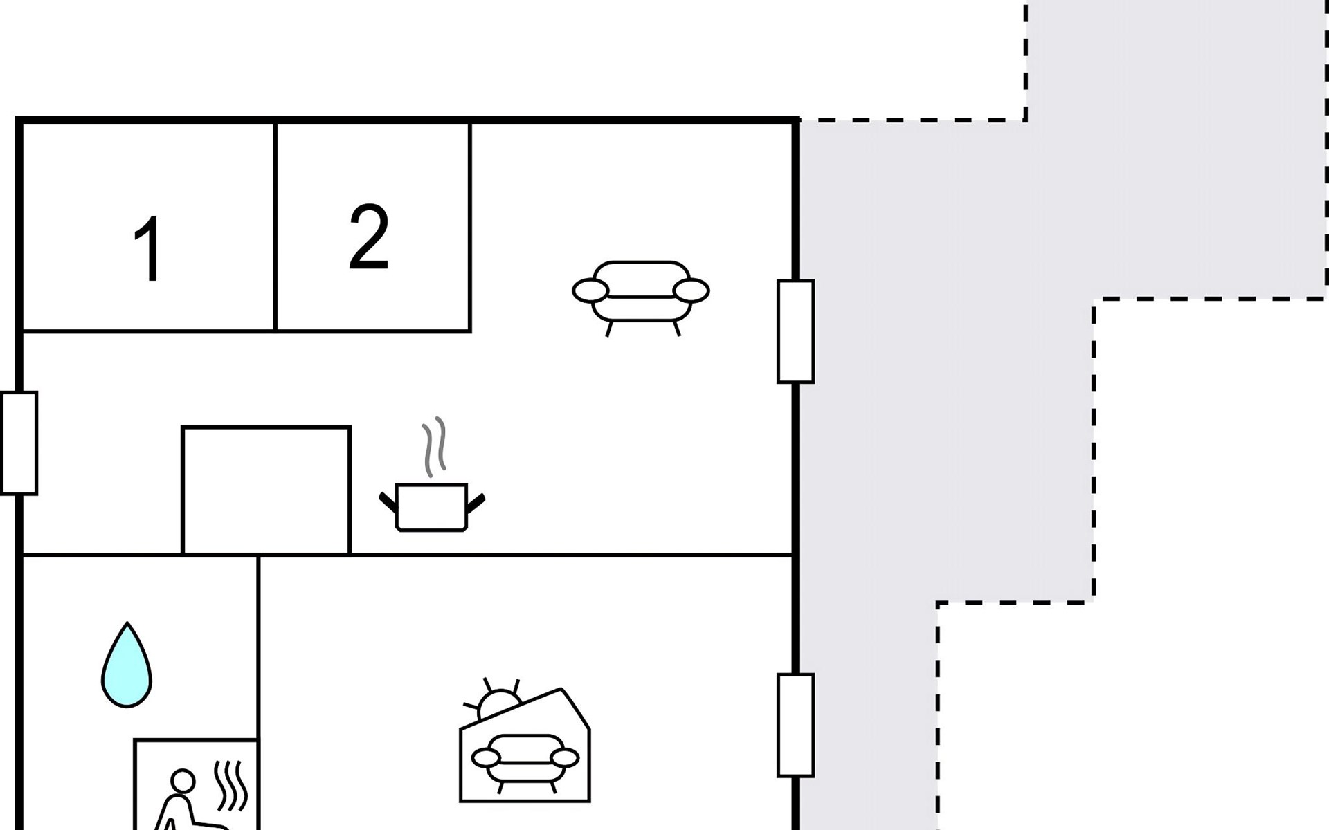 The heart of the cottage, which was modernized in 2019, is the living room open to the kitchen with modern furniture and a fireplace for cozy evenings. Furthermore, there are 2 bright bedrooms with double beds, 1 bathroom with sauna and whirlpool and a dining area in the winter garden. For extra comfort the bathroom has underfloor heating.