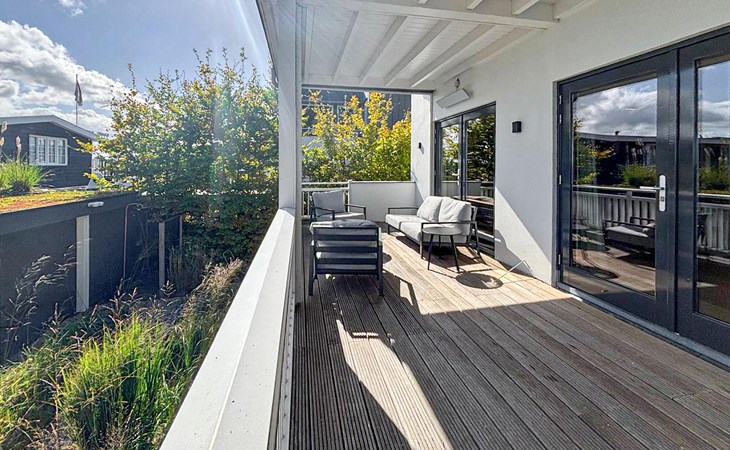 The terrace with lake view and radiant heaters is a cosy place to end long summer evenings.
