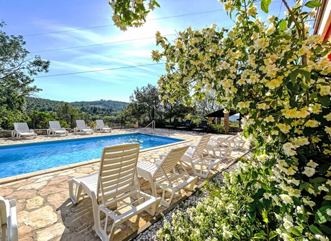 Small, cozy cottage in the picturesque village of Presika. The interior is modern and furnished with great care. Additional comfort is provided by air conditioners in every room. On the well-kept and fenced property you will find a play corner, barbecue and swimming pool. So you can prepare a delicious dinner on the grill while your children are running around or swinging merrily. The inviting and excellently placed pool is equipped with a counter-current system. In the whole surrounding area you can enjoy wonderful long walks. Be sure to visit Labin, whose old town houses many buildings from the Venetian era and delights many visitors. The museum was designed like an old mine with tunnels and is a sure hit with your kids. This region is home to some of the most beautiful beaches on the peninsula, the most famous of which can be found in the seaside resort of Rabac. With swimming, diving, sailing or fishing as recreational activities, there are also countless opportunities for an active vacation here.