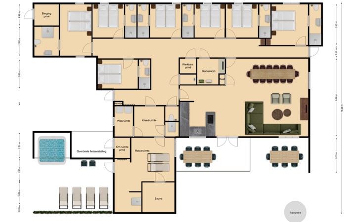 De complete en ruime accommodatie. Voor ieder wat wils. Van trampoline tot sauna.u