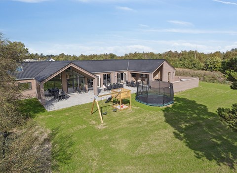 Not far from the charming town of Ebeltoft, in the beautiful Mols Bjerge National Park, lies this fantastic three-storey house. It is a dream for a large family or families who want to travel together. Numerous bedrooms and a sleeping loft offer you an oasis of peace where you can enjoy a good night's sleep after discovering the benefits of the large house. On the second floor, you will find a spacious living room with cozy furniture and a wood-burning stove for chilly days. From here you can enjoy the view of Ebeltoft Vig and Frigates Jylland. The design with beautiful colors and modern furniture provides additional coziness and atmosphere. The two activity rooms with a wonderful selection of games tables and sports facilities provide plenty of fun and entertainment, as does the beautiful pool area with water slide, large whirlpool and sauna.