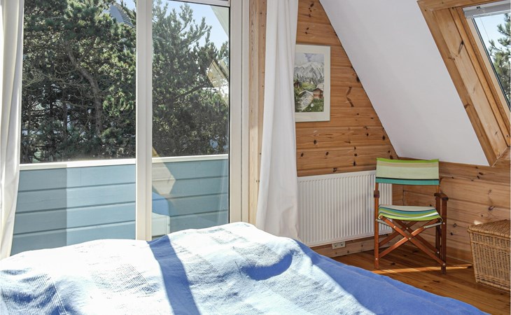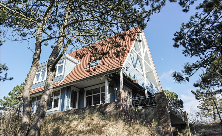The Finnhouse is a striking appearance in the small Bergen Aan Zee. The light blue painted wooden house is beautifully situated in a dune garden with pine trees and has views of the whole village.