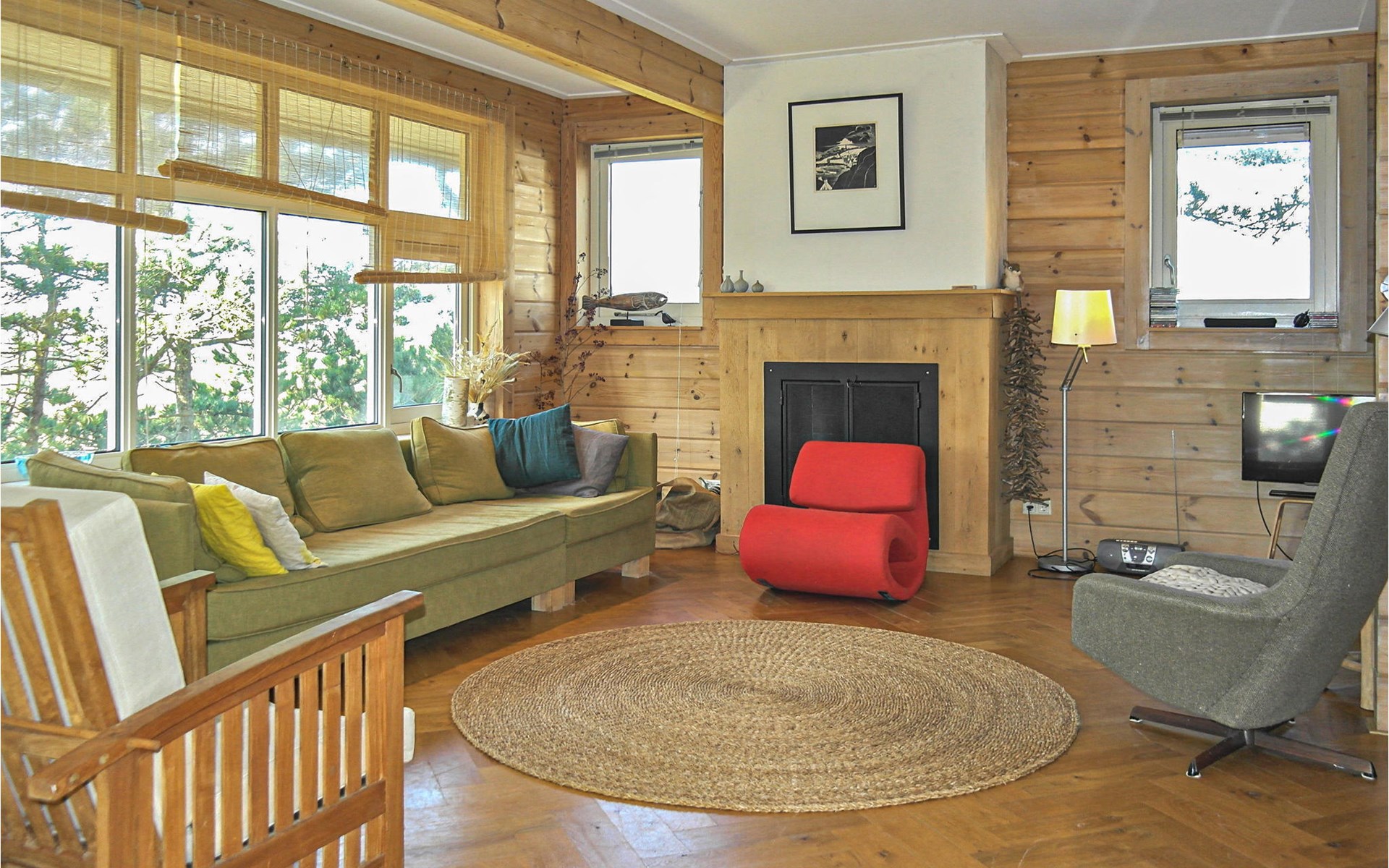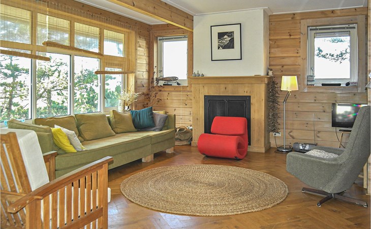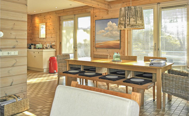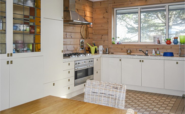 The spacious entrance hall has a separate wardrobe and toilet and provides access to the staircase and the cozy living room. Enjoy the fireplace, reading corner (with a lot of books!), TV with DVD player, spacious sitting area and beautiful views! The living room flows into the open kitchen with a large dining table that seats 9. In the kitchen you will find all the amenities you would expect in a good kitchen.