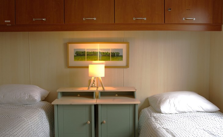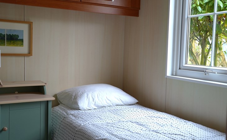 The chalet owes its name to its unique location. It is situated on a corner of the park, where you have complete privacy and are surrounded by greenery. Additionally, you have a spacious garden here with a view over the fields towards the Tower of Goedereede. In the garden, there is a practical wooden garden house. Your dog is also very welcome here.