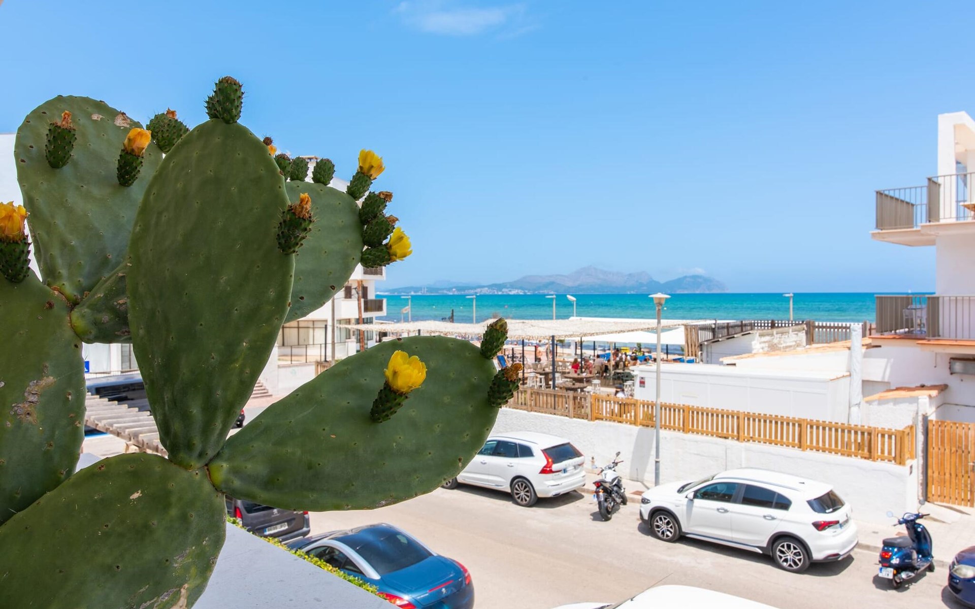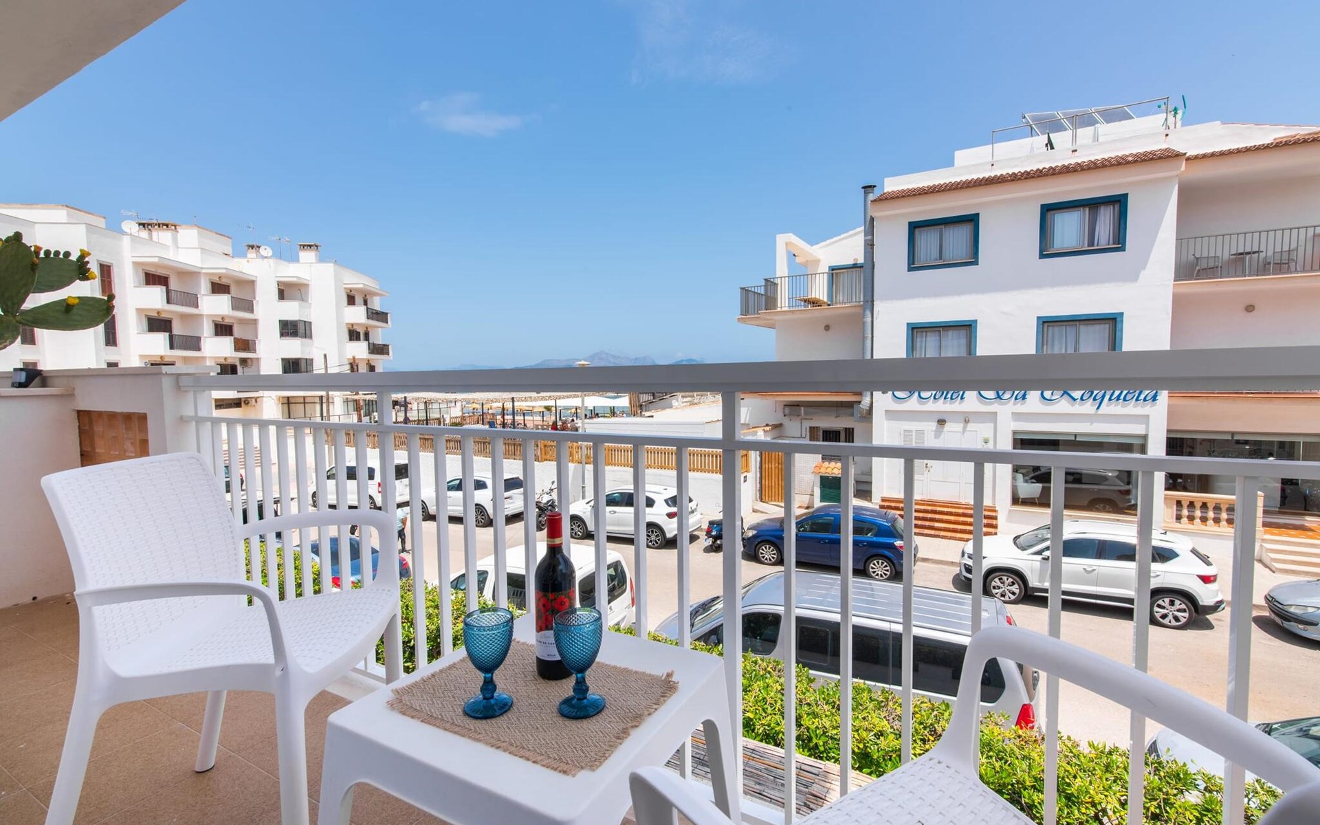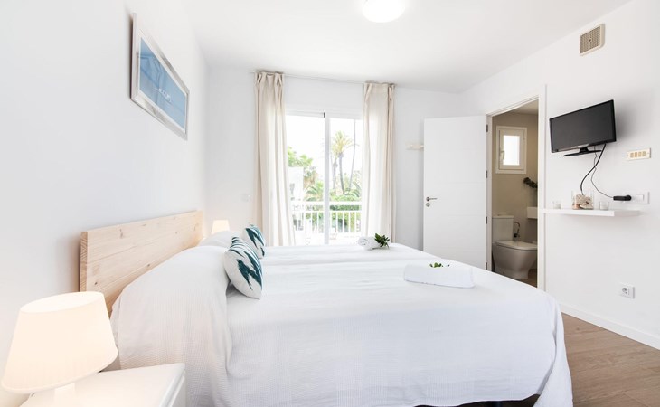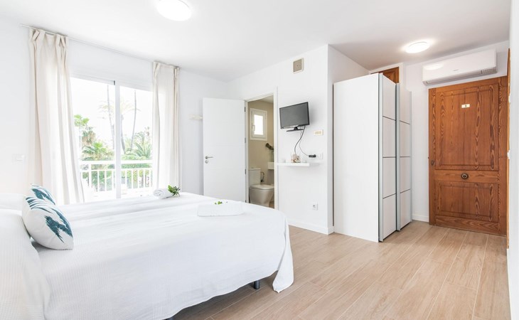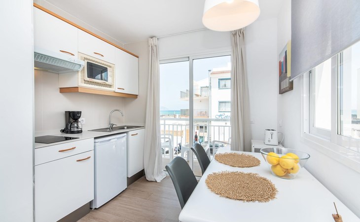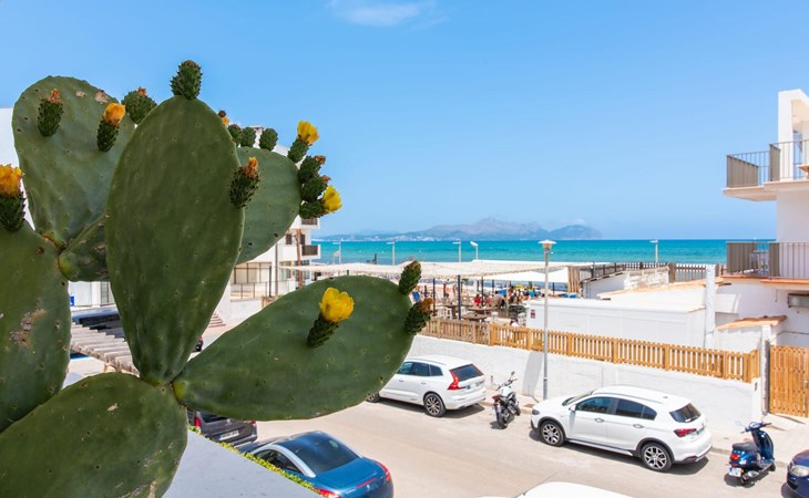 Two friends or a couple who want to be close to the beach and within walking distance of all amenities will find a comfortable retreat in this beautiful holiday apartment on Mallorca. From the small, east-facing balcony, where the two of you can enjoy a delicious breakfast at sunrise, you have a view of the beach just a few steps away, the turquoise-coloured sea and the Victoria Peninsula in the background. The seaside is almost right at your feet.