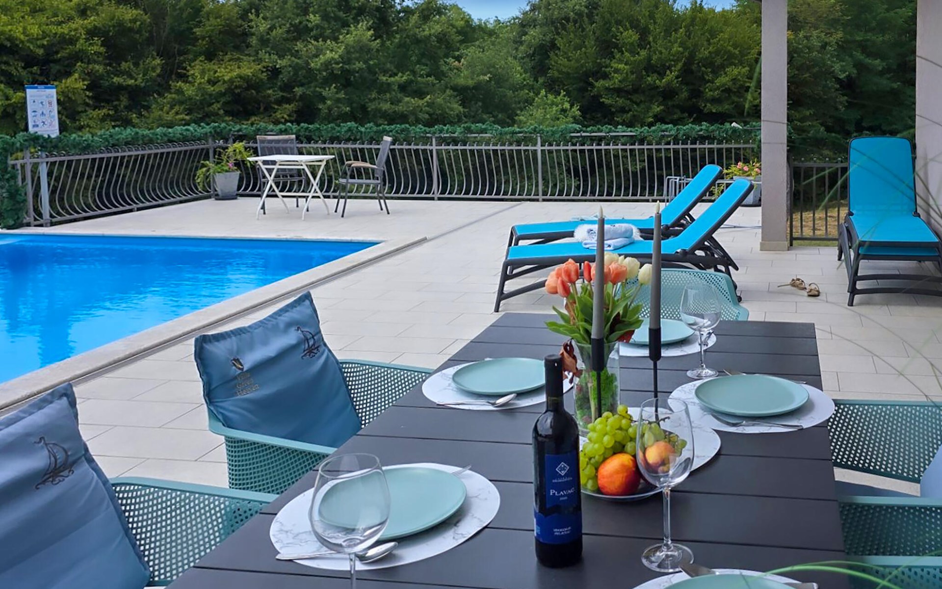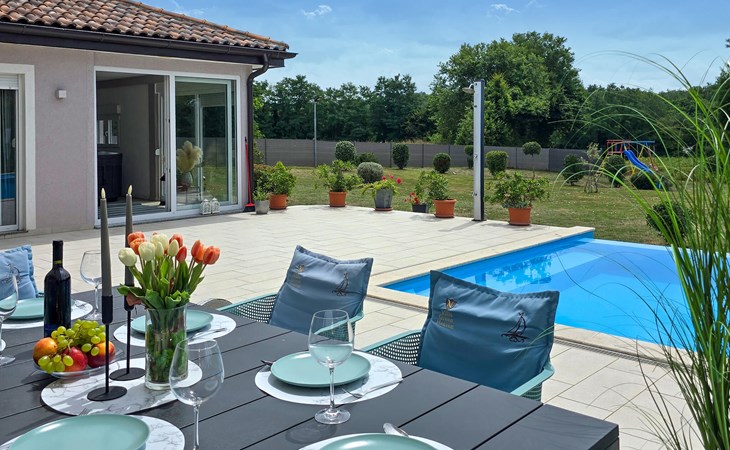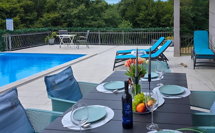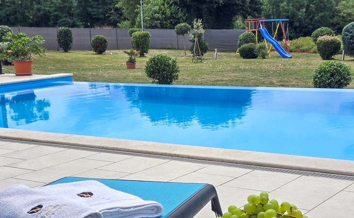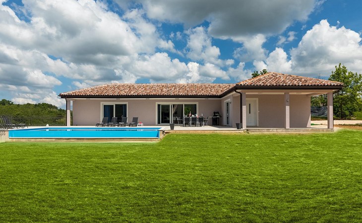 This beautiful family villa is located on a 6000 m2 plot in picturesque central Istria, near the medieval town of Pazin. The villa can accommodate up to 8 people and has 3 tastefully furnished bedrooms. It is a detached villa, with no neighbors within 300m in sight. :) Each bedroom is air-conditioned, overlooks the pool area and has an en-suite bathroom for added comfort. Two bedrooms have a double bed and one has two single beds. An extra bed is available in one of the rooms. The sofa bed in the living room is also available for two additional guests. The large open-plan living and dining area with fully equipped kitchen is very bright thanks to the large glass surfaces and has direct access to the terrace and pool area. Outside there is a dining table for al fresco meals and a gas/charcoal barbecue. Relax on the sun loungers next to the pool and enjoy the tranquillity of this heavenly beautiful area. The villa has a "meditation garden" This beautiful villa is located in the interior of the stunning Istrian peninsula. The cave of Pazin and the castle of Pazin, which inspired the French writer Jules Verne in his novel "Mathias Sandorf", are only a short drive away from the villa. Central Istria is known for small, picturesque, medieval towns that are irresistibly reminiscent of Tuscany or Provence. During your stay in Istria, visit the Euphrasian Basilica (Unesco cultural heritage) in the old town of Porec, well-preserved Roman amphitheater in Pula or head to the first beach and relax in the crystal clear sea. During your stay at Villa Heaven you can also enjoy regional cuisine and a glass of good Istrian Malvazija.