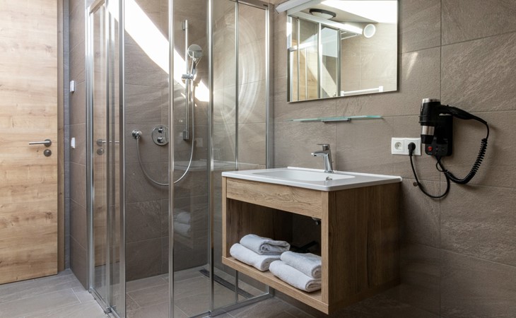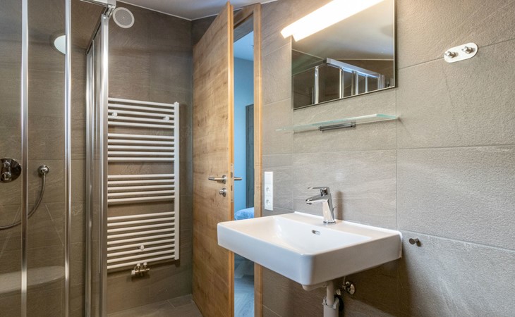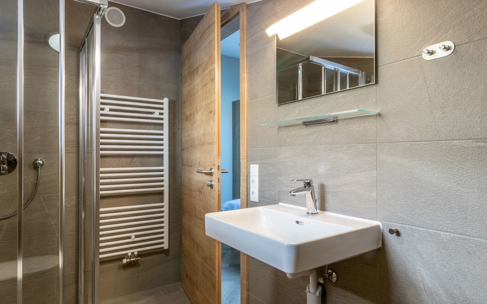 There are three double bedrooms, one of which is set up as a master bedroom with its own bathroom. The second bathroom is shared by the other two bedrooms and it's equipped with a walk-in shower. The entire flat is equipped with underfloor heating, which gives off a pleasant warmth. There is a heated ski room for your ski equipment and a lockable bike shed for your bikes in summer. The penthouse can be reached from the parking garage by lift or by stairs.